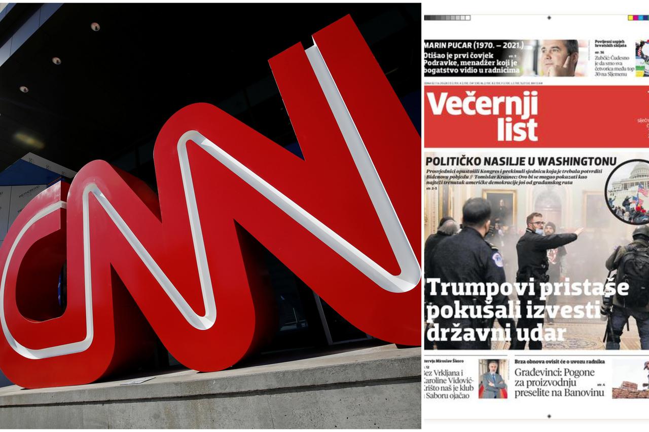 40 PROBOJ U CAPITOL Naslovnica Večernjeg lista završila na CNN-u Prezentirajući što o jednom od najtežih dana u američkoj povijesti pišu novine diljem svijeta, prikazan je i Večernji list.
