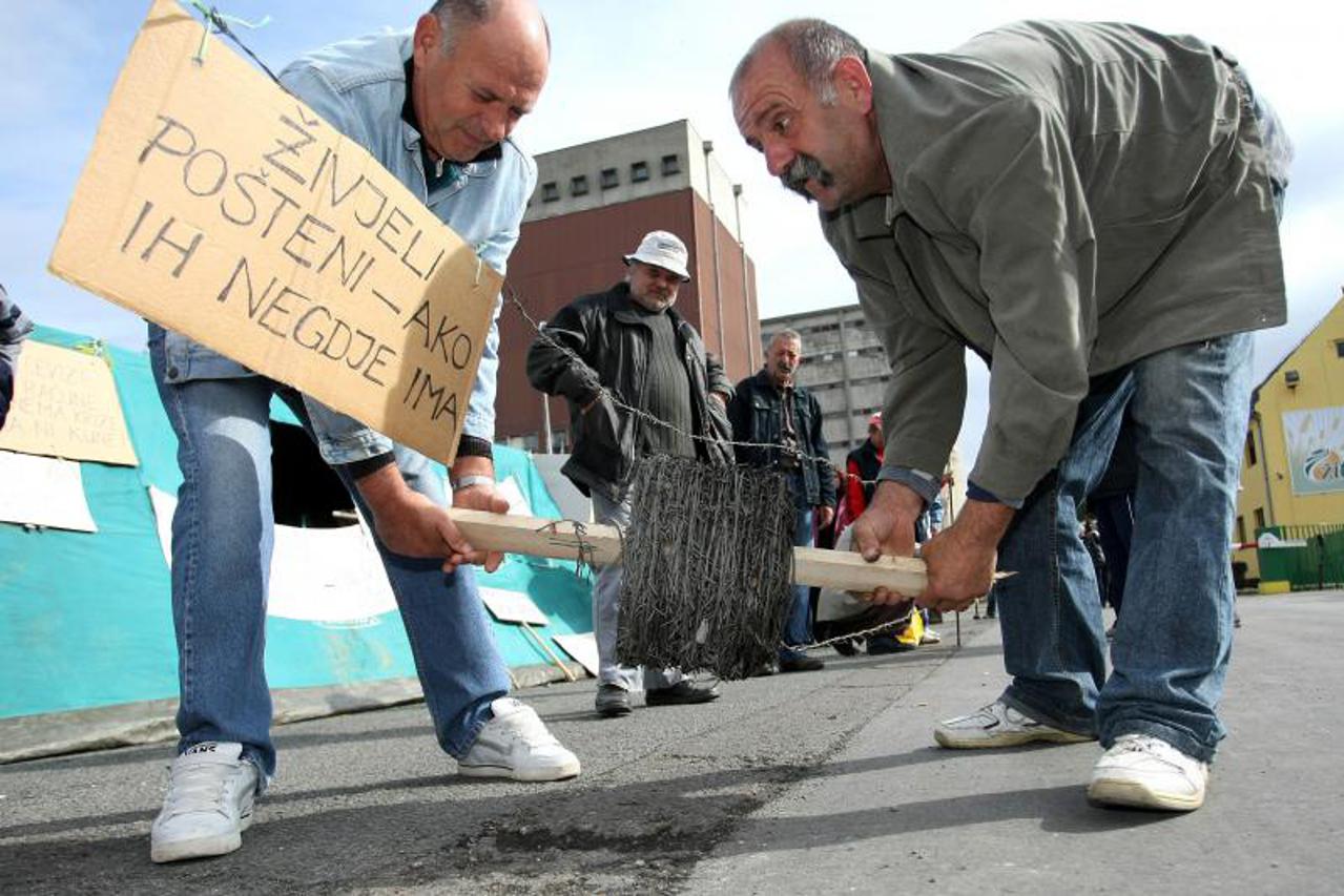 60 prosvjed Bivši radnici Đakovštine otvorili "Vladin logor" i ogradili se žicom Danonoćno će dežurati do ispunjenja svojih zahtjeva – cjelokupne isplate otpremnine od oko 26 milijuna kuna.