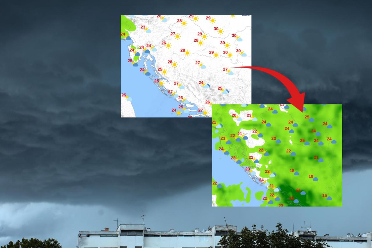LJETO NA PAUZI Kao da je već jesen: Bit će pljuskova s grmljavinom, upaljeni alarmi. Pogledajte gdje će biti najgore Vrijeme će sutra biti promjenljivo oblačno i nestabilno, uz povremenu kišu te lokalno izraženije pljuskove s grmljavinom.