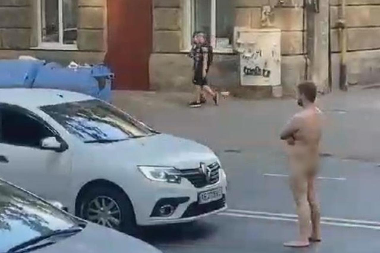 Na snimci koja se širi društvenim mrežama vidi se kako muškarac potpuno gol hoda po sredini ceste i zaustavlja automobile.