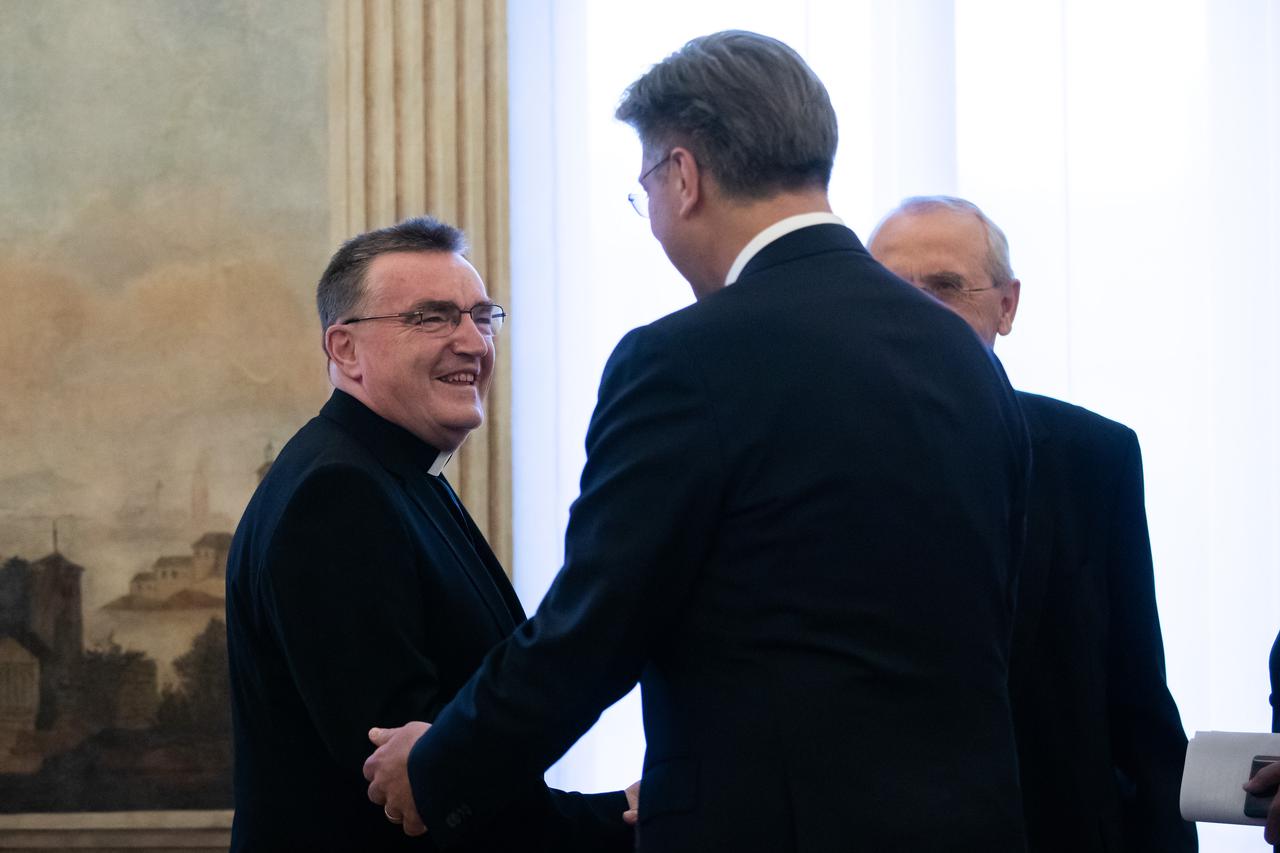 Video sadržaj 27 'Prijateljska atmosfera' Plenković primio biskupe: 'Predani smo provedbi ugovora s Vatikanom' Predstavnici Hrvatske biskupske konferencije izrazili su zadovoljstvo sastankom te važnost kontinuiranog dijaloga s Vladom i resornim ministarstvima na brojnim društvenim područjima