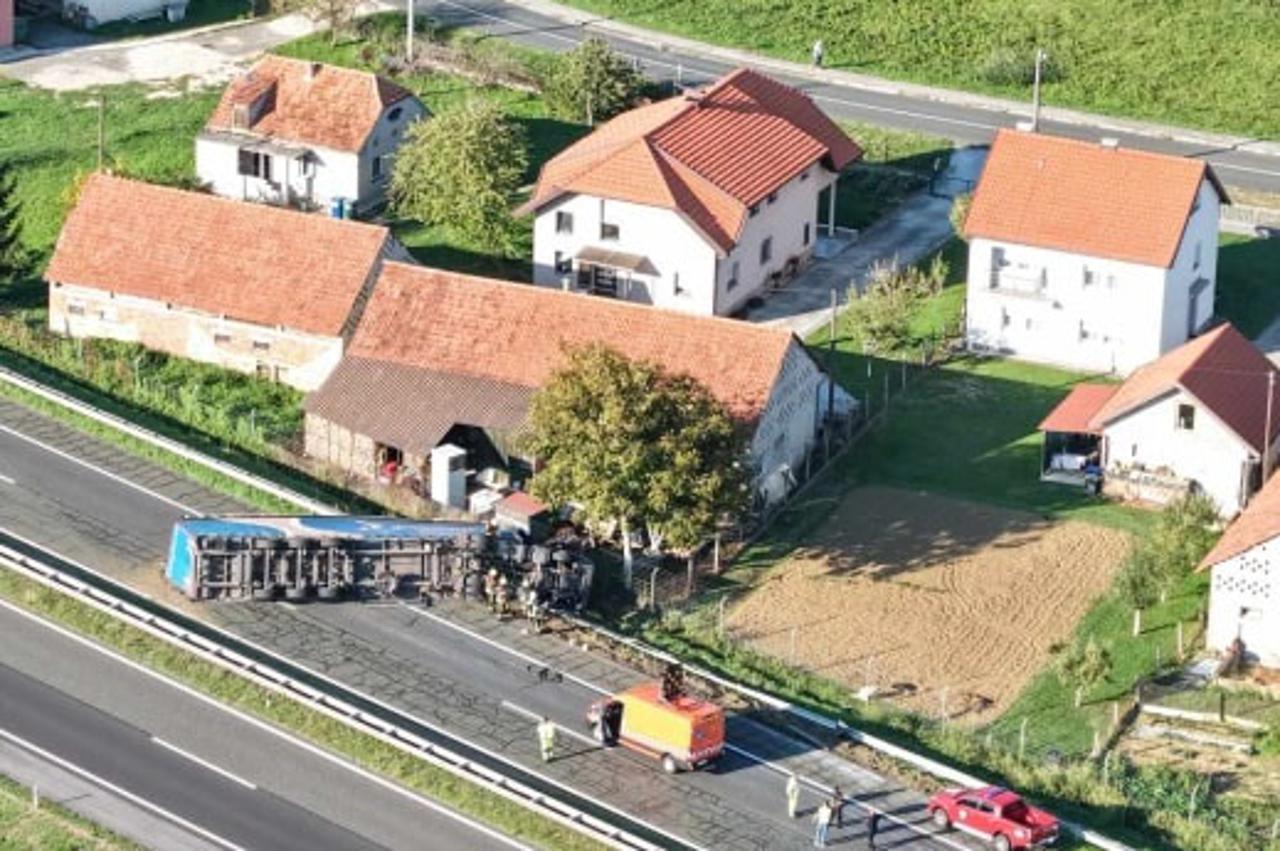 NEDALEKO OD ZABOKA FOTO Prometni kolaps na A2: Kamion se prevrnuo na bok, promet obustavljen Vozila se u međuvremenu preusmjeravaju na čvor Sveti Križ Začretje.