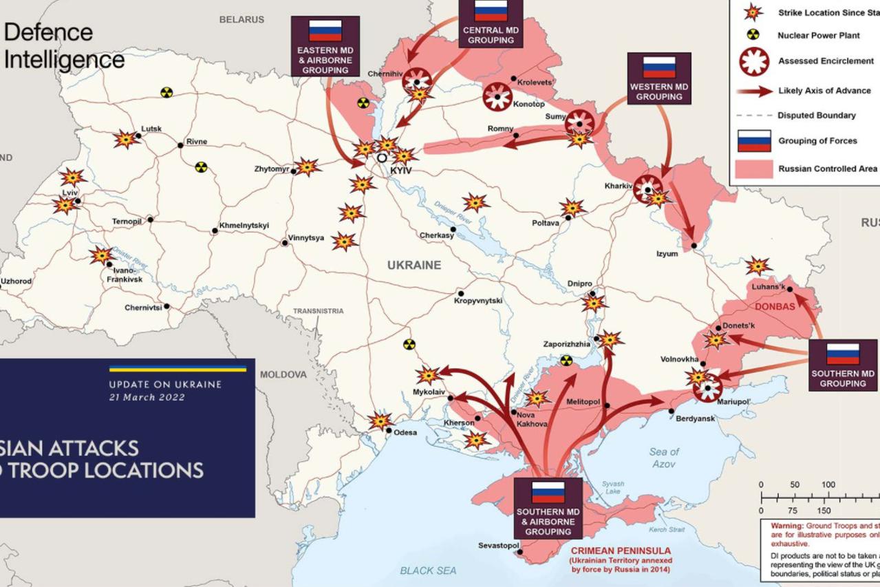 2 FOTO Britansko ministarstvo objavilo novu kartu ruskog napredovanja: 'Ilegalna i ničim izazvana invazija se nastavlja' Britansko ministarstvo obrane u nedjelju je objavilo novu kartu ruskog napredovanja u napadnutoj Ukrajini.