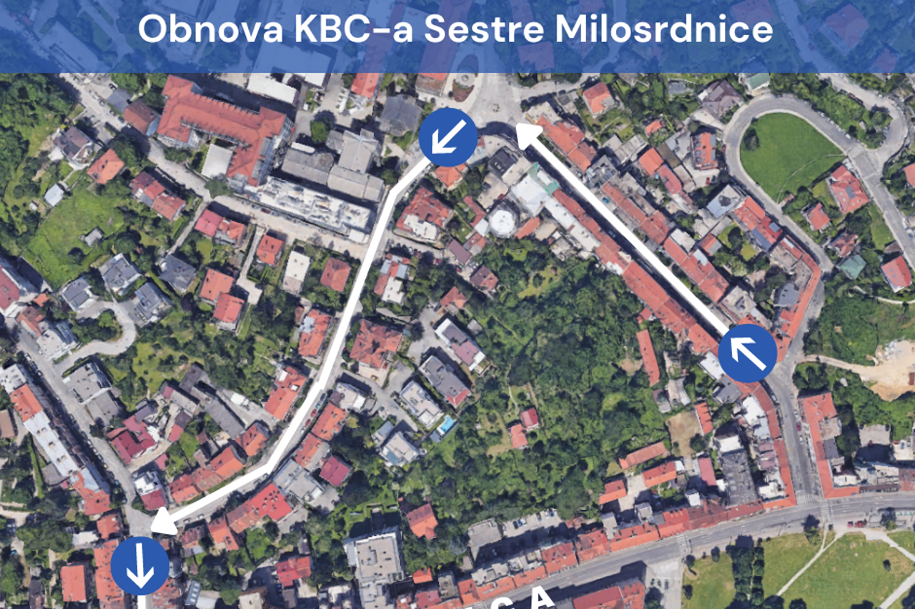 Video sadržaj provjerite nove pravce Vozači oprez: Nova regulacija prometa oko Vinogradske bolnice trajat će najmanje dvije godine Podsjetimo, od subote je na snazi privremena regulacija prometa u ulicama oko KBC Sestre Milosrdnice zbog radova na bolnici pa će se u pojedinim ulicama voziti jednosmjerno.