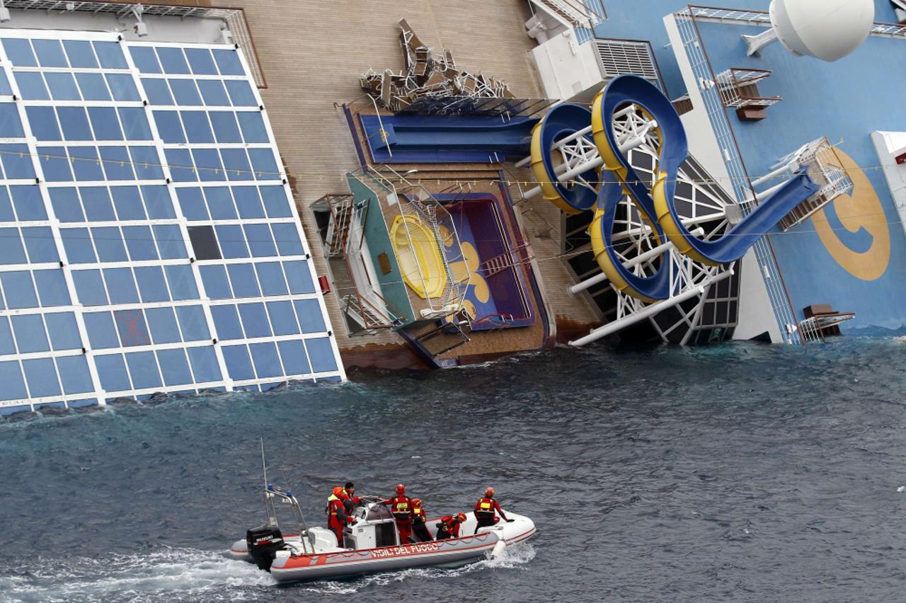 15 Potraga se nastavlja Moldavka spašena među prvima, kapetan Schettino je upozorio? Pokraj broda, koji je naslonjen na greben s kojega klizi i mogao bi potonuti na veću dubinu, postavljena su dva cementna bloka od po 54 tone i dvije boe.