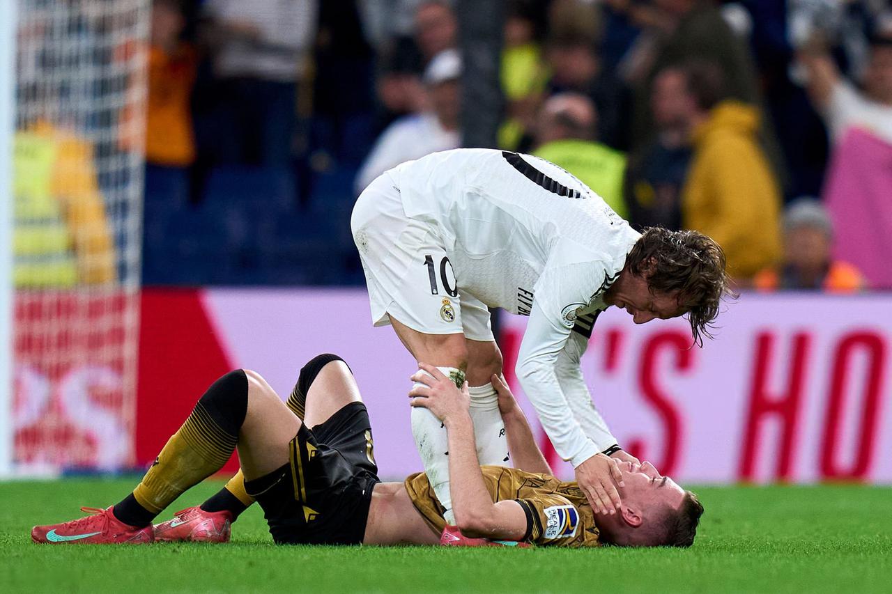 DVOJAC VATRENIH VIDEO Scena s Bernabeua za pamćenje, Modrić i Sučić izašli na teren i oduševili sve Subotnja večer na Santiago Bernabéuu bila je ispisana zlatnim slovima emocija dok se Luka Modrić, kapetan i legenda Real Madrida, opraštao od domaće publike. Ovi trenuci će se dugo pamtiti, a posebnu notu hrvatskom oproštaju dao je Luka Sučić, igrač gostujuće momčadi