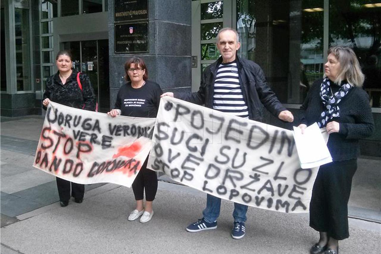 3 Hrvatska akademija znanosti i umjetnosti Pred Ministarstvom pravosuđa održan prosvjed zbog sumnje u korupciju u sudstvu Landeka kaže da godinama komunicira sa žrtvama pravosuđa koje upućuju na nepravilnosti. Radi se o predmetima u kojima se, primjerice, mrtvim osobama ili postojećim pravnim oosobama manipulira radi stjecanja nečije koristiti jer netko želi njihove nekretnine, rekla je
