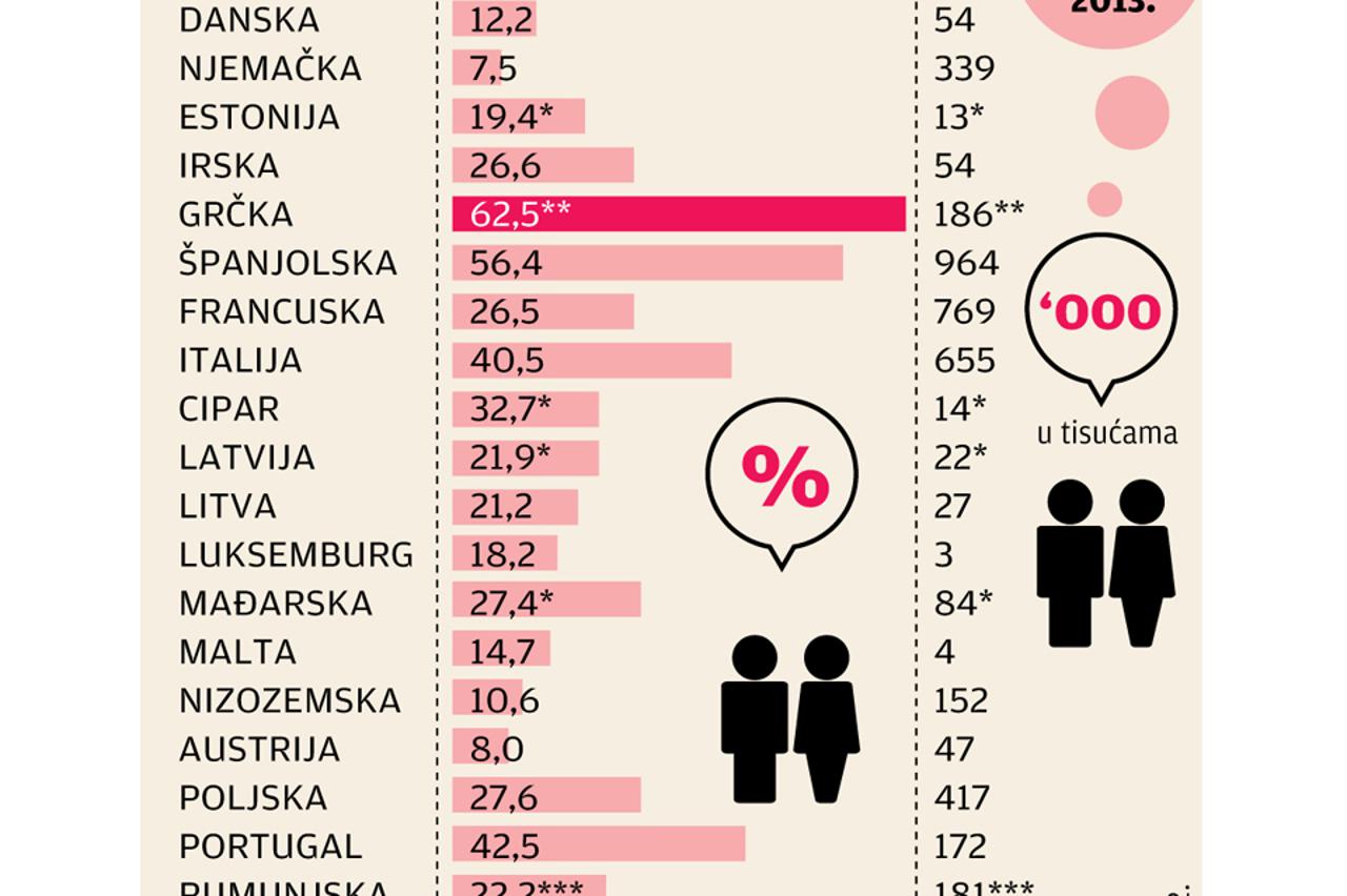 USPOREDBA Nezaposlenost mladih do 25 godina Udio u Hrvatskoj je 51,8 posto, a u Grčkoj 62,5... Austrija ima udio od samo osam posto.