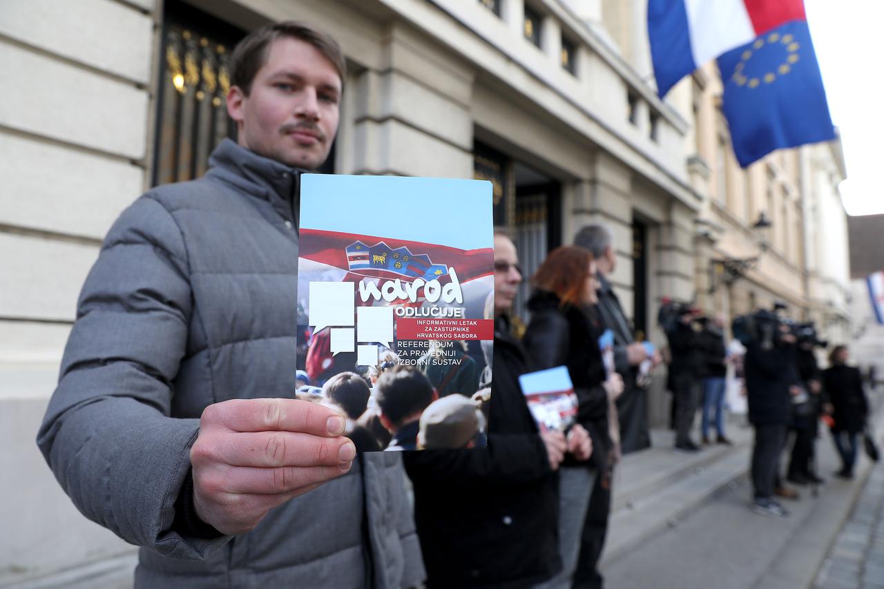Video sadržaj 2 Narod odlučuje Volonteri Građanske inicijative: Raspišite referendum za promjenu izbornog sustav Pred početak nove parlamentarne sezone, volonteri Građanske inicijative (GI) Narod odlučuje dočekuju zastupnike od kojih traže da podrže ustavno pravo hrvatskih građana na referendum