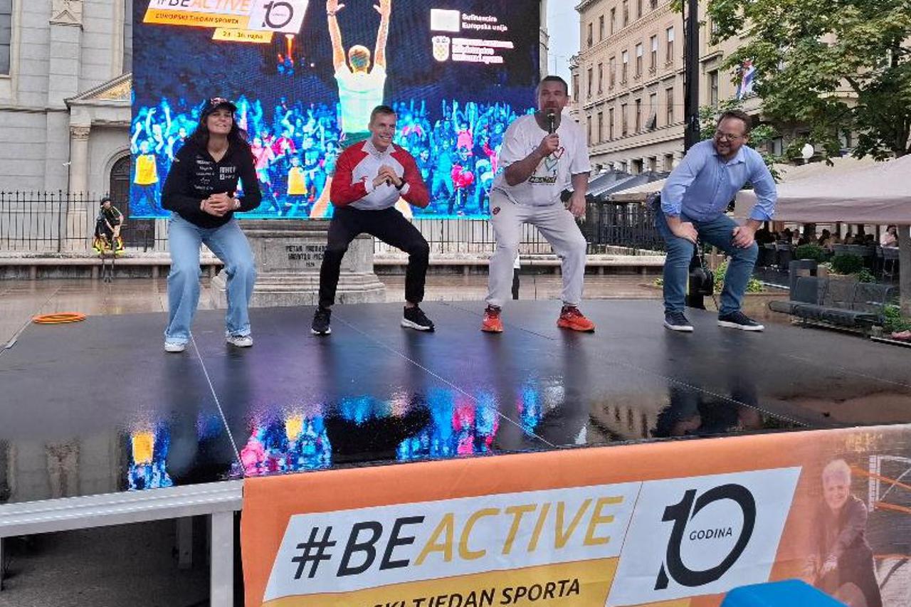 Budi aktivan Ministar Glavina, u središtu Zagrebu, otvorio Europski tjedan sporta Svečanost otvorenja uveličali su sportski asovi poput vaterpolista Luke Lončara i Maura Ivana Čubranića, tekvondaša Marka Golubića te dviju sjajnih sportašica, jedne bivše (odbojkašica Maja Poljak) i jedno aktivne i u usponu (skijašica Zrinka Ljutić)