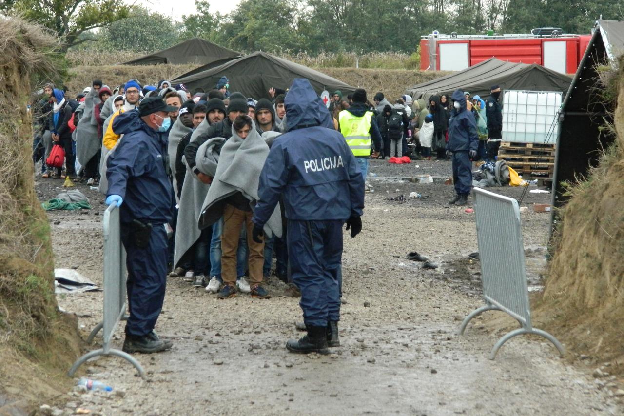 Na ulazu u Hrvatsku i dalje je postavljena policijska ograda, a pripadnici interventne policije formirali su živi zid prema izbjeglicama pokušavajući regulirati situaciju