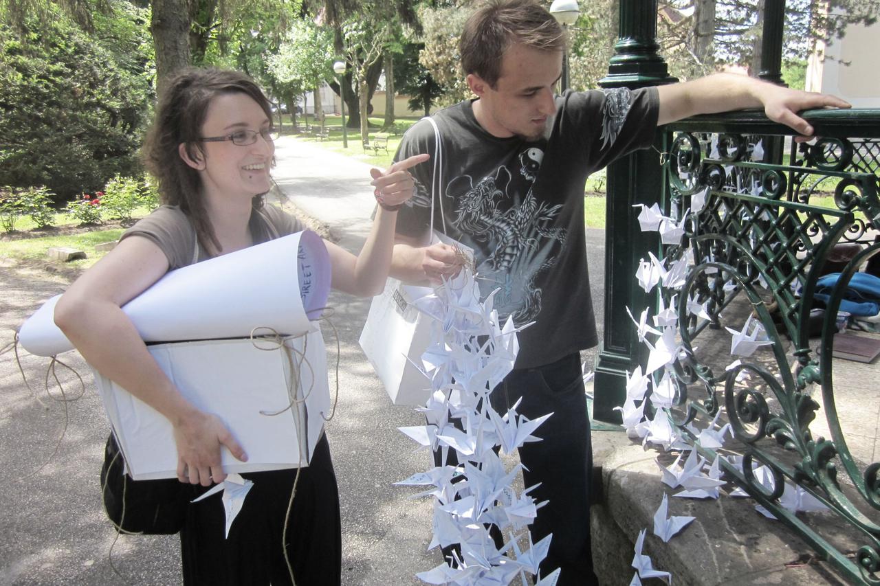 Petrinja Po glazbenom paviljonu postavljeno 800 origami ždralova Odgovori su ispisani na papiranim ždralovima, u mitološkoj tradiciji simbolima perspektive, vječne mladosti, dugog života