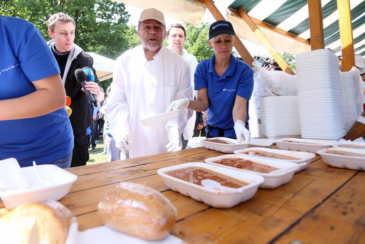 30 'Najmanje je radnika' Praznik rada više nema značenje kao nekada, ljudi dolaze u Maksimir zbog besplatne hrane Bandić sa svojim suradnicima, ali i direktorima Holdingovih podružnica upravo dijeli porcije graha građanima koji su se okupili u Maksimiru, a Darinko Kosor poručuje kako nije vrijeme za neke čestitke