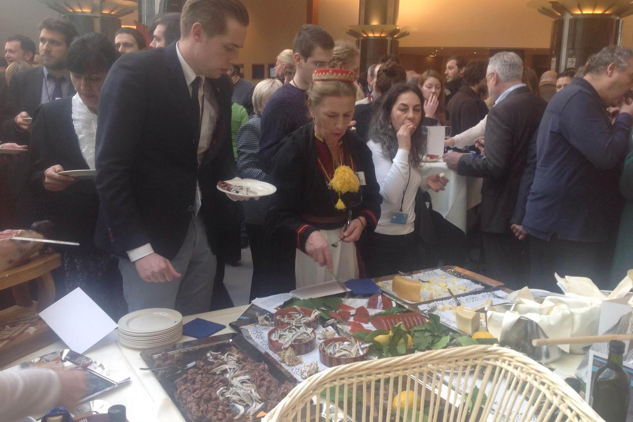 5 Gozba u EP-u Europski parlamentarci se borili za zalogaj više sira iz mišine i drniškoga pršuta Briselski diplomati uživali su u proizvodima 15 dalmatinskih proizvođača autohtone hrane koji su u Europskom parlamentu ponudili sir iz mišine, drniški pršut, slane srdele, konavovsku tortu...