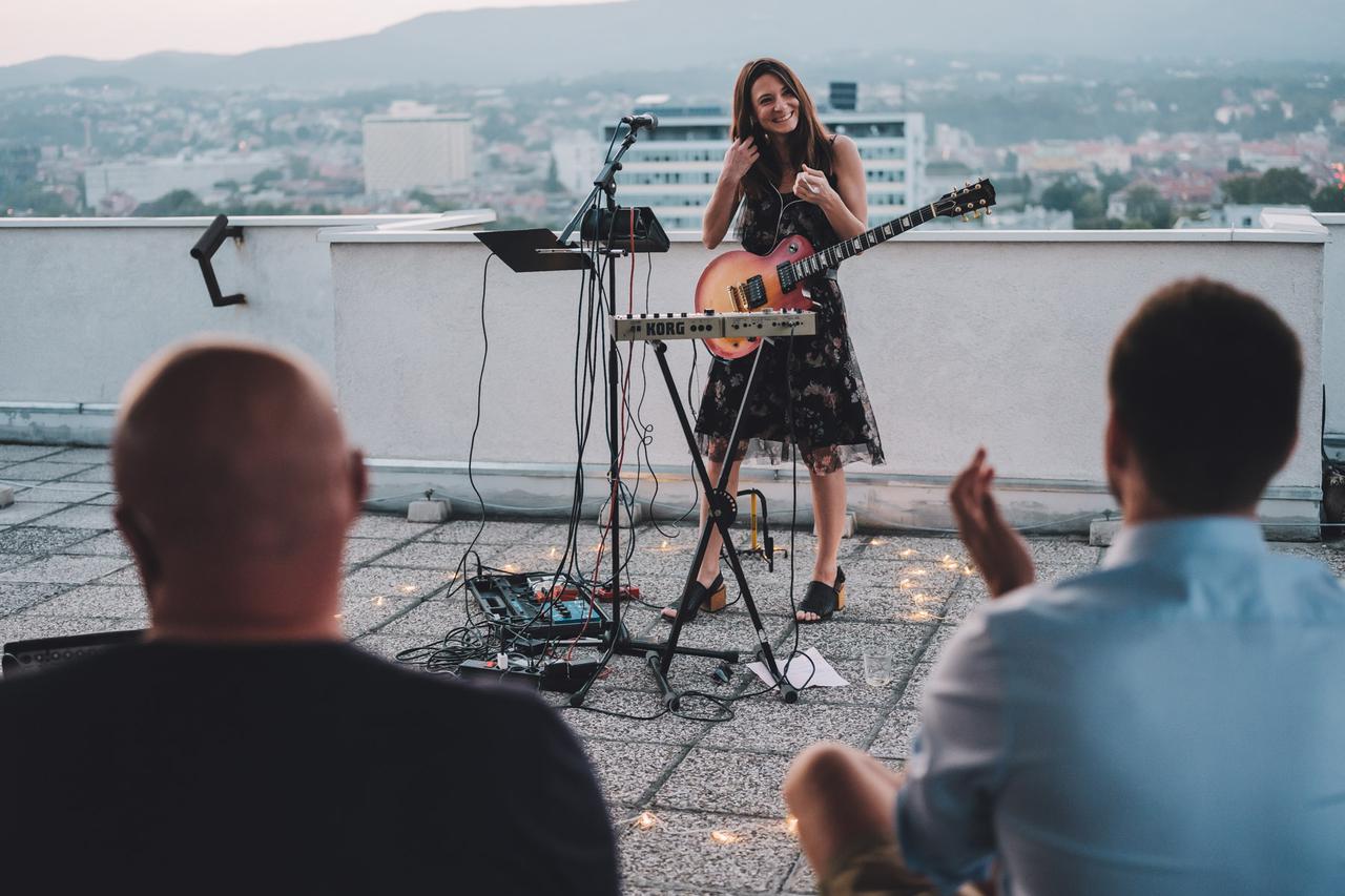 Video sadržaj 2 mlada glazbenica 'Ne idem više na turneje, koncerte organiziram na krovu svoje zgrade. Stranci ih obožavaju' Rooftop Sessions najčešće rezervira preko aplikacije, a posjetitelji uz glazbu dobiju i izbor raznih pića.