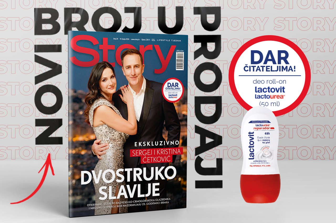 Promo Novi Story daruje čitateljima - Lactovit Lactourea deo roll on! Ne propustite magazin Story koji VAM DARUJE Lactovit Lactourea deo roll on! Potražite na kioscima od srijede, 19. lipnja. Novi broj donosi i ekskluzivnu priču - ljubavnu bajku pjevača Sergeja Ćetkovića i supruge Kristine koja traje 25 godina, a razloga za slavlje ovaj miljenik publike ima još i o njima govori samo za Story.