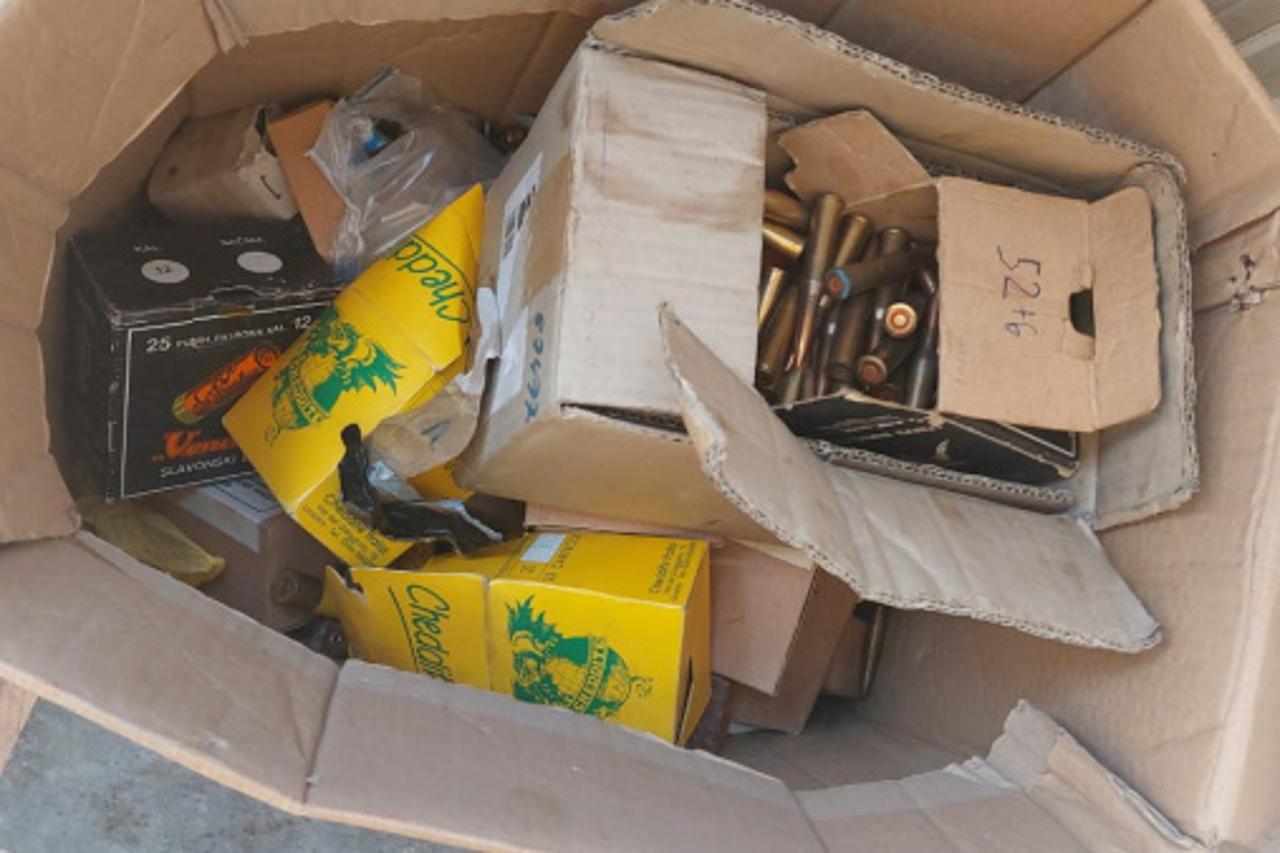 Video sadržaj u sisku Kupio garažu, a dobio cijeli arsenal: Pronašao 13 ručnih bombi, 5 pušaka, više od 7000 metaka... 13 ručnih bombi, protupješačku minu, kilogram eksploziva,21 komad elektrodetonatorskih kapisla, 4 upaljača za mine, 5 automatskih pušaka, 61 okvir za automatsku pušku te 7099 komada raznog streljiva