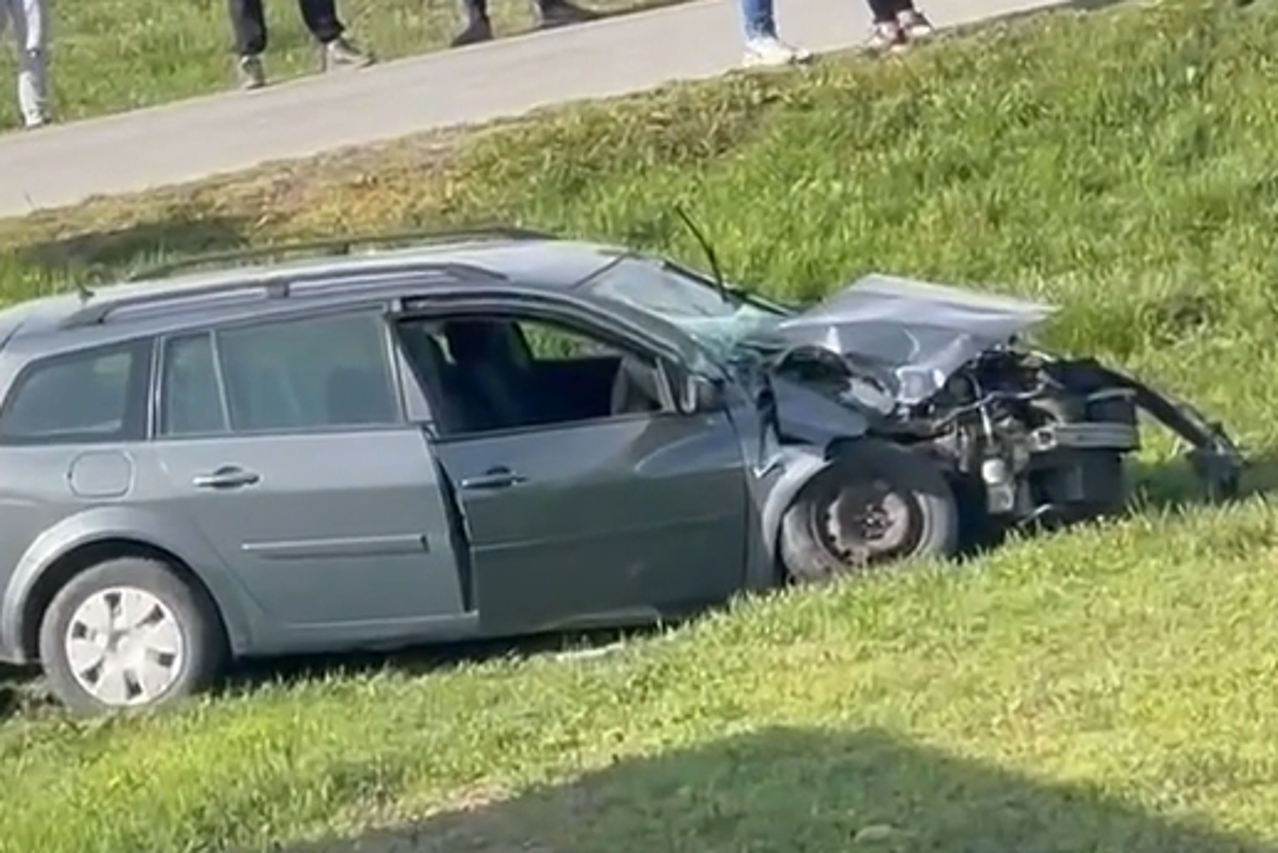 Nesreća na pruzi Vlak udario automobil kod Osijeka : 'Trubio mu je dugo' Na snimci se vidi automobil kojeg je vlak odbacio na ledinu pokraj pruge