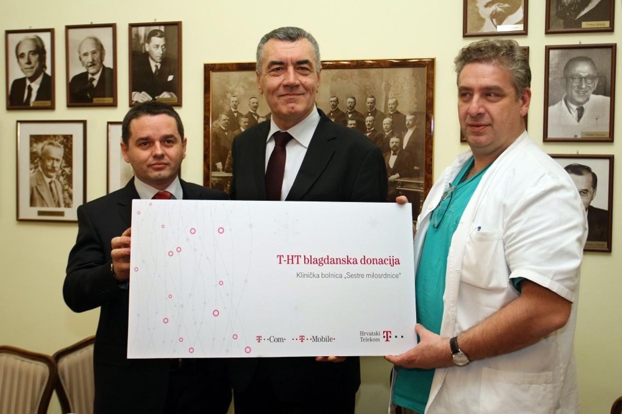 T-Hrvatski Telekom ukupno donirao za blagdane 1,15 milijuna kuna T-Hrvatski Telekom je danas u Kliničkoj bolnici Sestre milosrdnice u Zagrebu predstavio ovogodišnju blagdansku donaciju namijenjenu zdravstvenim ustanovama diljem Hrvatske.