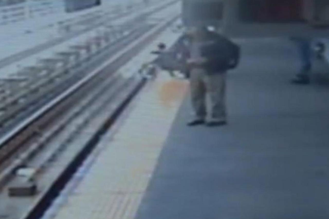 Video sadržaj IZBJEGNUTA TRAGEDIJA Mladi vojnik spasio invalida koji je pao na tračnice metroa Muškarac u invalidskim kolicima želio je pročitati znak pa se previše približio rubu perona i pao