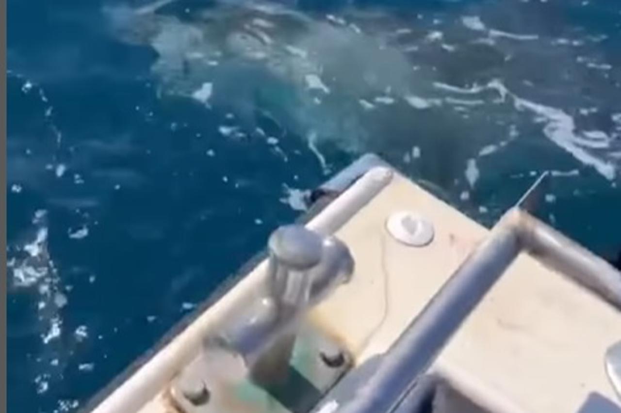 Video sadržaj 2 KAKO SE SAMO USUDIO? Velika bijela psina kružila im je oko broda, ribič je potom napravio nešto ludo Morskog psa dugačkog oko četiri metra privuklo je vjerojatno meso ribe koje su muškarci bacali u more kako bi namamili veću ribu, no nisu očekivali da će im doći velika bijela psina