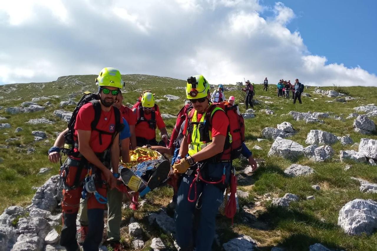OZLIJEĐEN PLANINAR Za vrijeme vježbe HGSS-ovaca na Dinari stigla dojava o pravoj nesreći Nakon što je došla dojava jedna grupa spašavatelja se kroz stijenu uspela do ruba i stigla na mjesto nesreće. U pomoć je pozvan helikopter HRZ-a