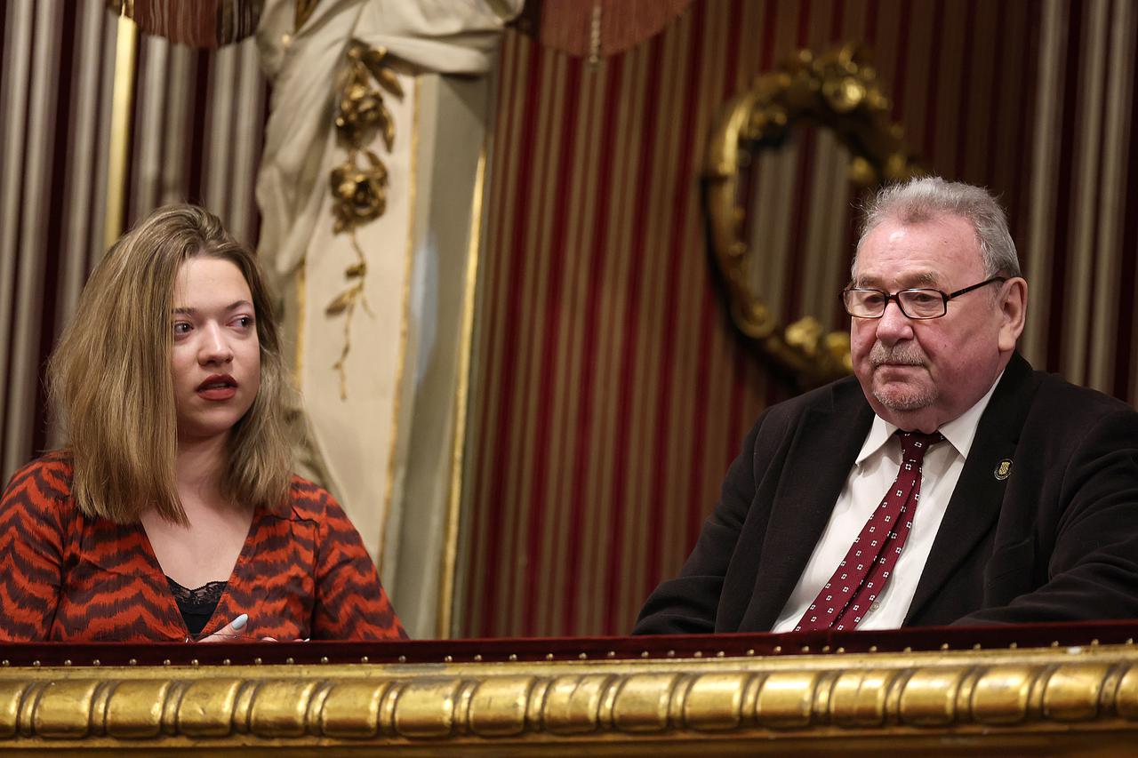 Video sadržaj 3 u HNK Vladimir Šeks snimljen u rijetkom izlasku s unukom Ivom, zajedno su bili na premijeri Iva je inače kći Šeksove kćeri Zrinke koju je dobio u braku s prvom suprugom, arhitektonskom tehničarkom Marijom, s kojom je proveo 32 godine.