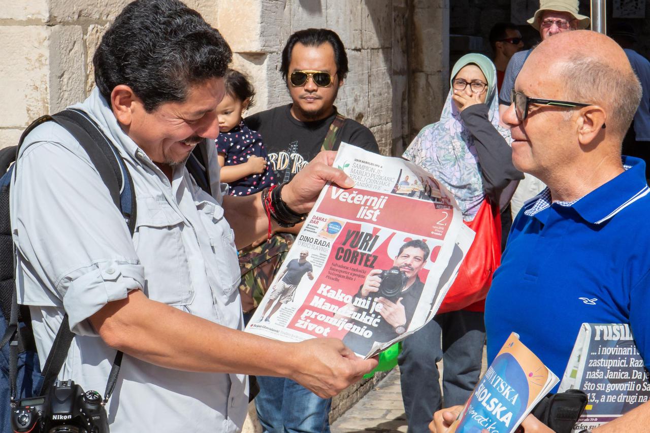 Video sadržaj 7 Boravak u Hrvatskoj Fotoreporter AFP-a Yuri Cortez: Oduševljen sam Hrvatskom! Yurija video porukom pozdravili Modrić i Lovren, a preko društvenih mreža Mandžukić i Pivarić, Cortez u Salvador nosi hrvatsku zastavu, dres hrvatske nogometne reprezentacije i poseban poklon s posvetom Marija Mandžukića
