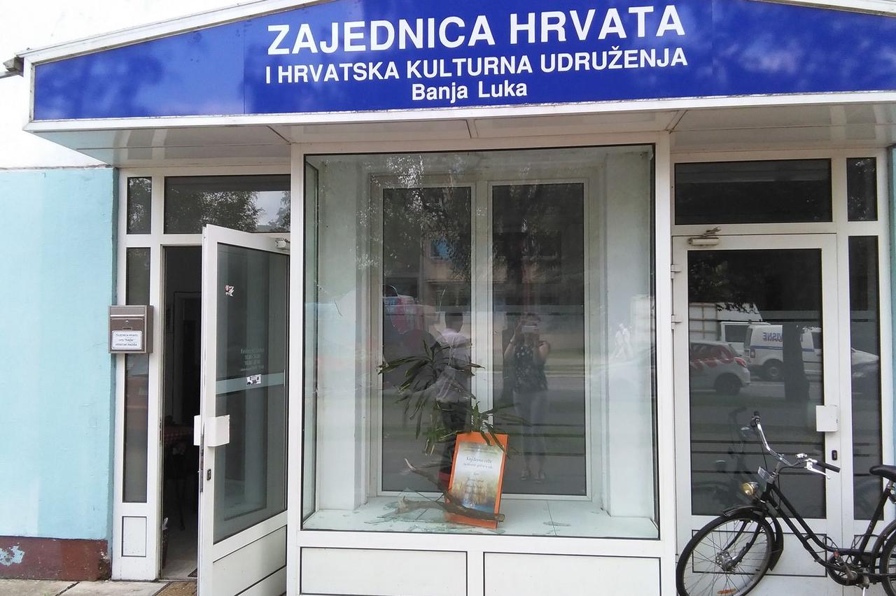 Razbijeno staklo na prostorijama Zajednice Hrvata u Banjoj Luci