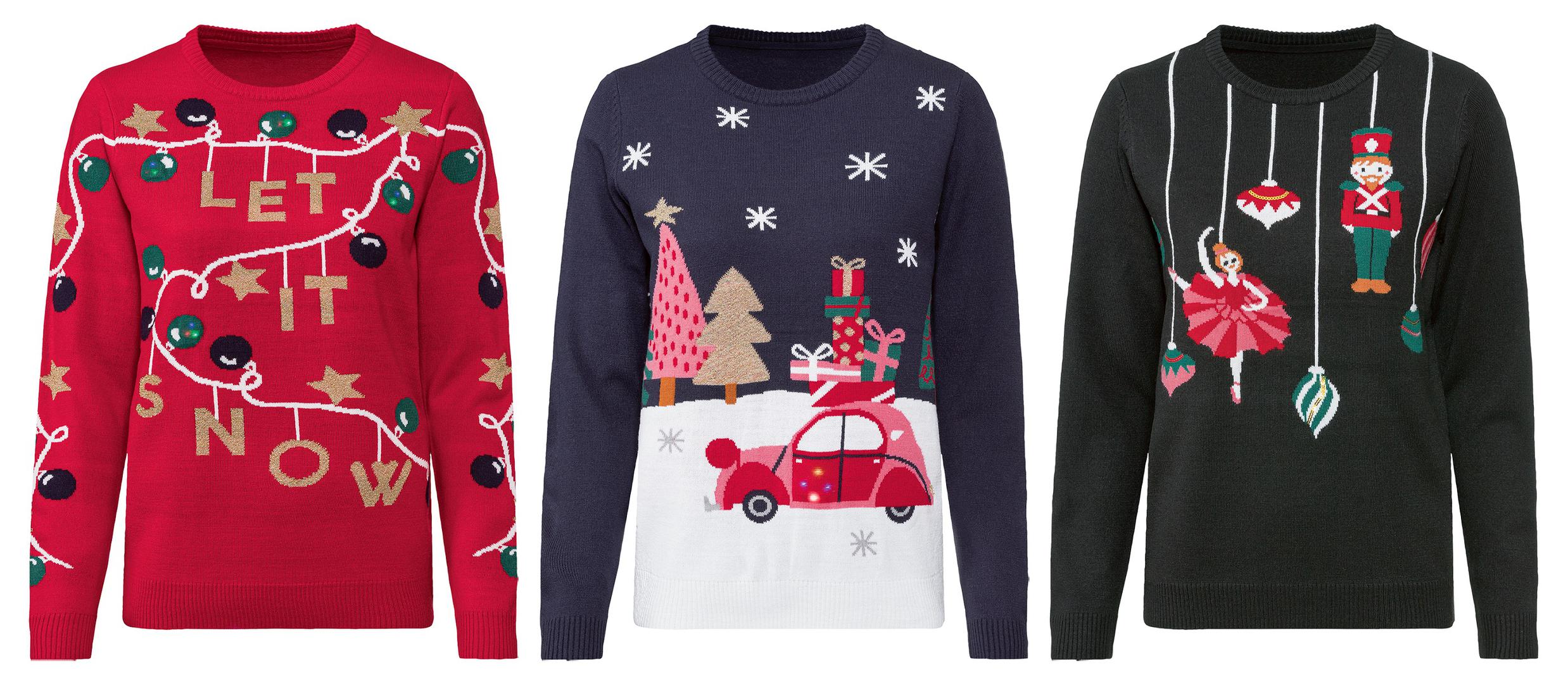 Iz bogate blagdanske ponude izdvajamo ženske kombinezone od nježnog, mekanog i kvalitetnog flisa, dječje pidžame s visokim udjelom pamuka, satenske plahte s božićnim motivima i ženske božićne pulovere uskog kroja s LED lampicama koje trepere pri kretanju, s LED lampicama i božićnom melodijom te s umetkom šljokica. Naravno, u asortimanu će se naći i nezaobilazni odjevni predmeti za blagdansko razdoblje - božićni puloveri, tzv. ugly Christmas sweaters.