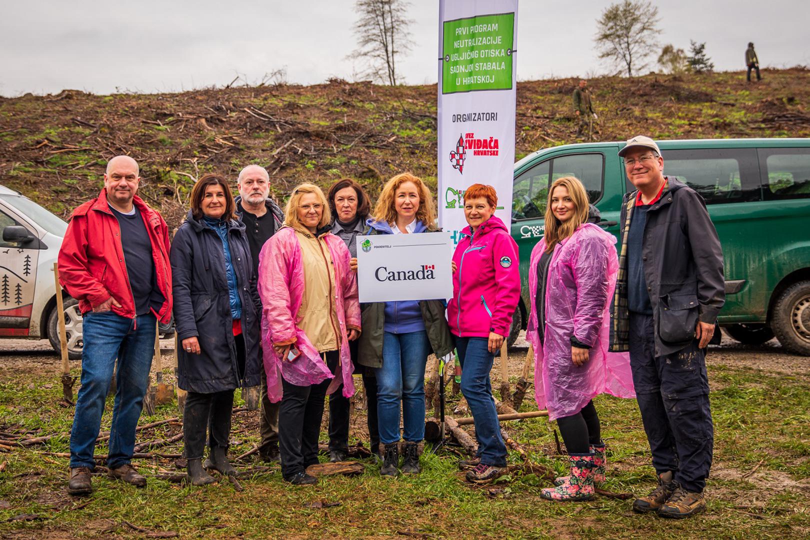 Upravo je veleposlanik Kanade, Nj.E., gospodin Alan Bowman, zajedno sa svojim suradnicima iz veleposlanstva, sudjelovao na posljednjoj proljetnoj akciji sadnje održanoj ovoga ponedjeljka u Perjasici u općini Barilović. U ovoj, 56. po redu akciji pošumljavanja, uz veleposlanika sudjelovali su i volonteri Saveza izviđača Hrvatske, šumari Hrvatskih šuma iz šumarije Duga Resa, učenici i nastavnici Drvodjeljske škole iz Zagreba te zaposlenici tvrtke Pepco, koji je poslovni partner projekta. Zajedno su posadili čak 2000 novih sadnica hrasta lužnjaka i kitnjaka kojom prigodom je veleposlanik Bowman izjavio: „Sadnja stabala iznimno je bitna za prirodu i za borbu protiv klimatskih promjena i jako sam sretan što veleposlanstvo Kanade podržava ovaj projekt. Ovdje sam s cijelim našim timom iz veleposlanstva te smo, usprkos kiši koja danas pomalo pada, sretni što ćemo ovom sadnjom nadoknaditi dio naših emisija CO2 i pomoći u stvaranju nove šume. Uvijek naglašavamo da sama sadnja stabala nije dovoljna, trebamo smanjivati naše emisije CO2, a za onaj dio koji ne možemo dovoljno smanjiti, postoje načini poput ovog da se dio emisija nadoknadi. Zahvaljujem se izviđačima, Hrvatskim šumama i HEARTH-u, kao i svim uključenim partnerima, što se trude smanjiti negativne učinke klimatske krize.“