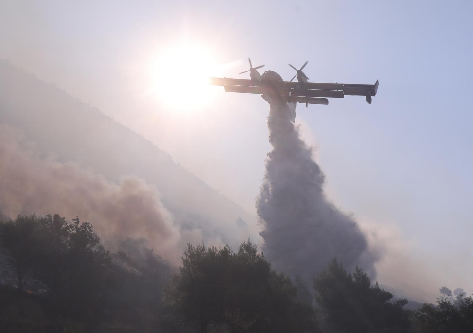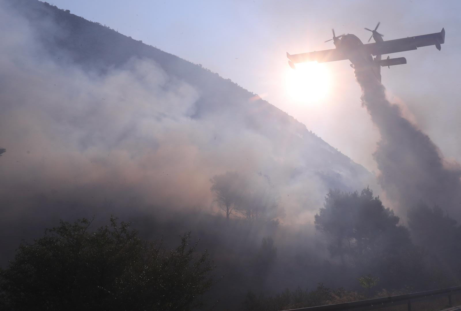 Udari munja su izazvali dva požara na brdu Perun između Žrnovnice i Podstrane, a najveći je aktivan na brdu Markovača, istočno od Žrnovnice, vatra je nekoliko stotina metara od tamošnje vojne baze, piše portal "Dalmacija danas".