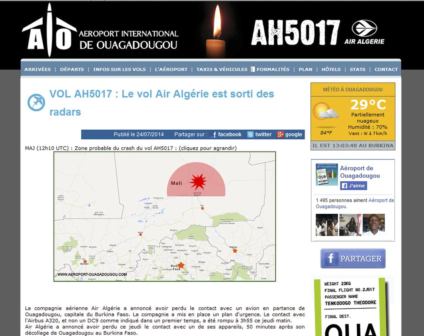 Olupina alžirskog aviona pronađena blizu granice Malija i Burkine Faso