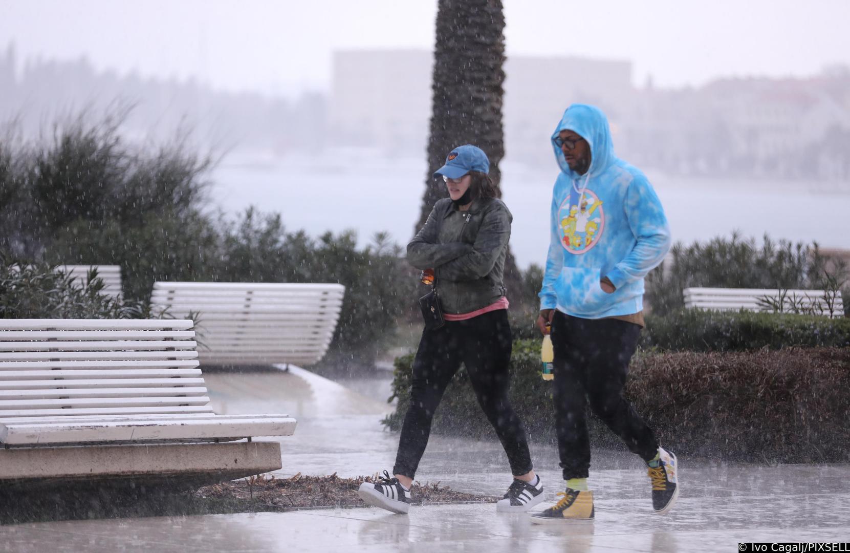 14.02.2022.,Split- Obilna kisa dijelu americkih mornara s nosaca USS Harry S Truman pokvarila izlazak u grad. Photo: Ivo Cagalj/PIXSELL