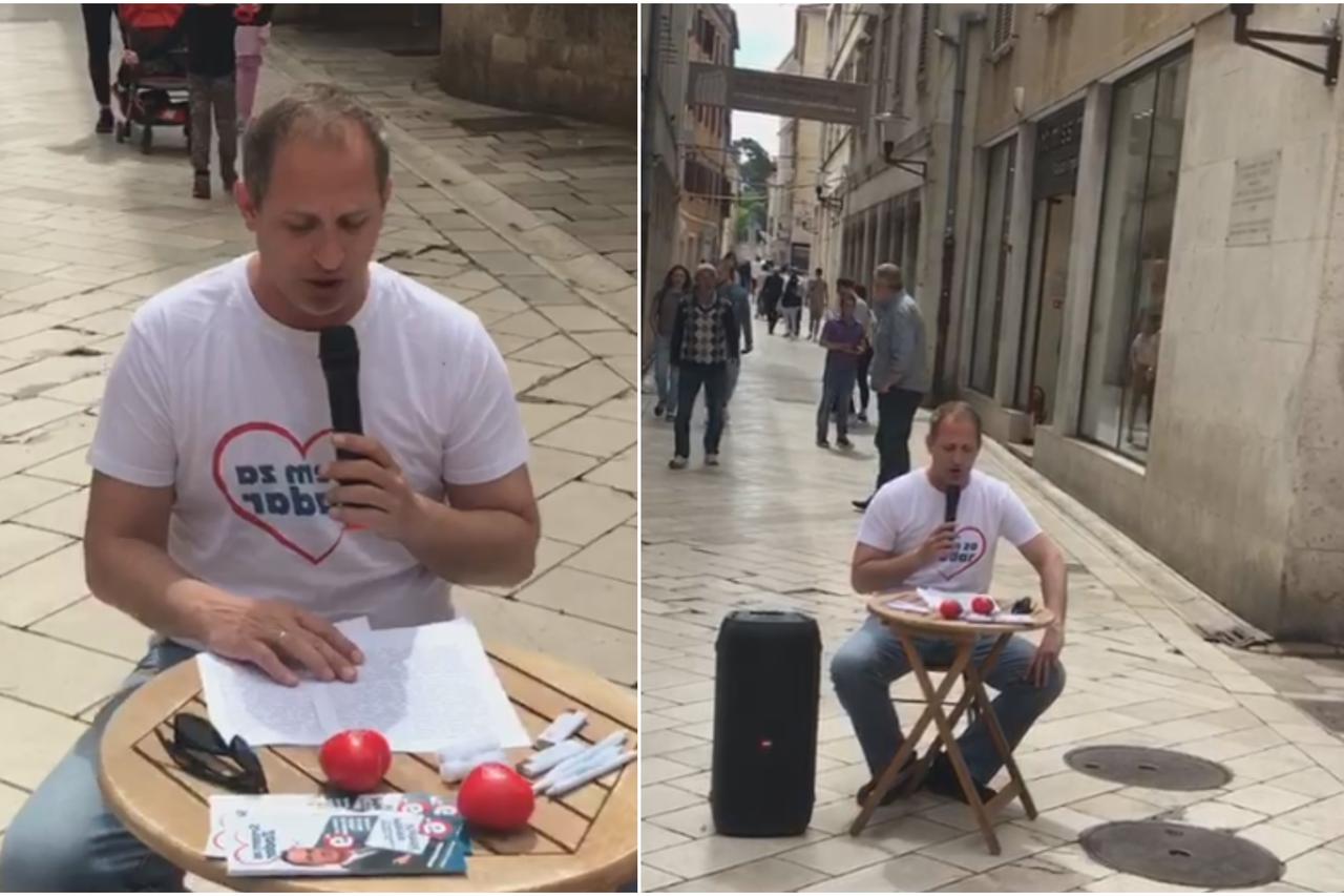 Posljednji dan pred šutnju predizborna kampanja je u Zadru dosegla vrhunac. I dok se najviše obilaze stolovi kafića i prave selfiji sa favoritima, Ante Rubeša iz Akcije mladih stavio je stolić i zvučnik na najpoznatiju zadarsku ulicu Kalelargu.