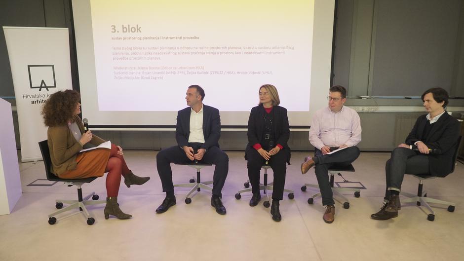 U trećem bloku, Sustav prostornog planiranja i instrumenti provedbe, Nikša Božić (Odbor za urbanizam HKA) kao uvodničar predstavio je temu Sustavi planiranja u odnosu na razine prostornih planova, izazovi u sustavu urbanističkog planiranja, problematika neadekvatnog sustava praćenja stanja u prostoru kao i neadekvatni instrumenti provedbe prostornih planova. Moderatorica panela bila je Jelena Borota (Odbor za urbanizam HKA), a sudionici panela bili su: Bojan Linardić (MPGI-ZPR), Hrvoje Vidović (UHU), Željka Kučinić (ZZPUZZ / HKA) i Željko Matijašec (Grad Zagreb).