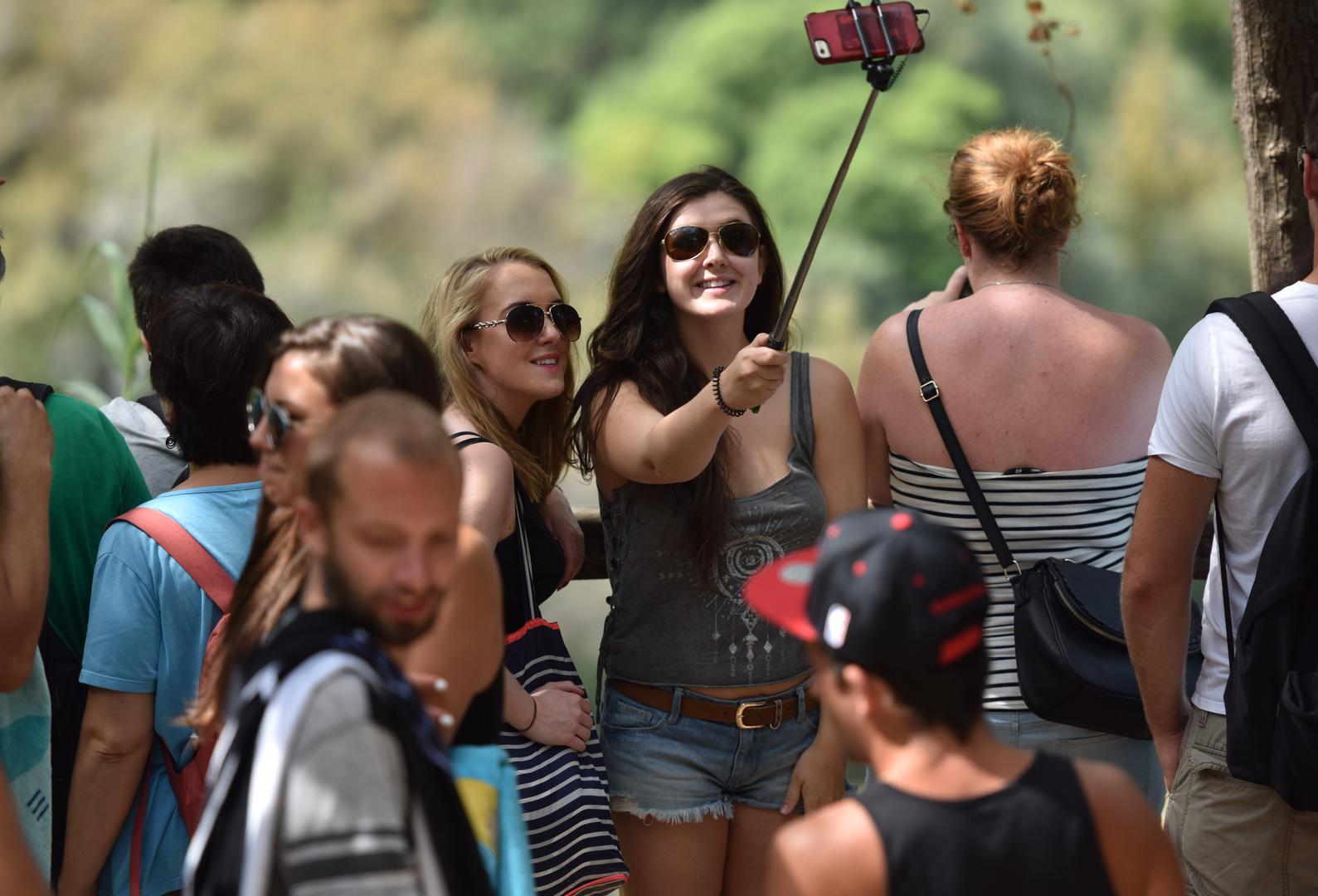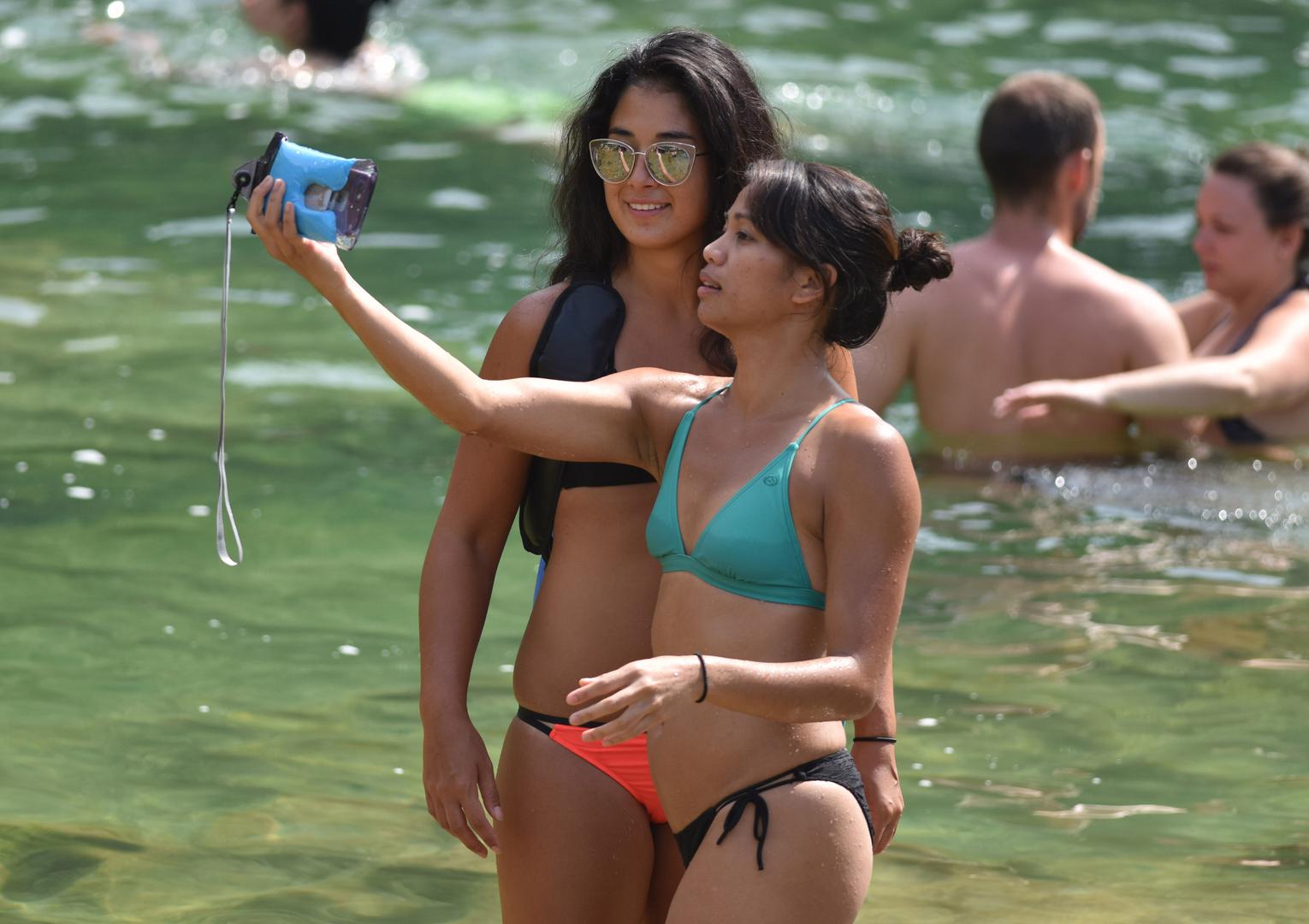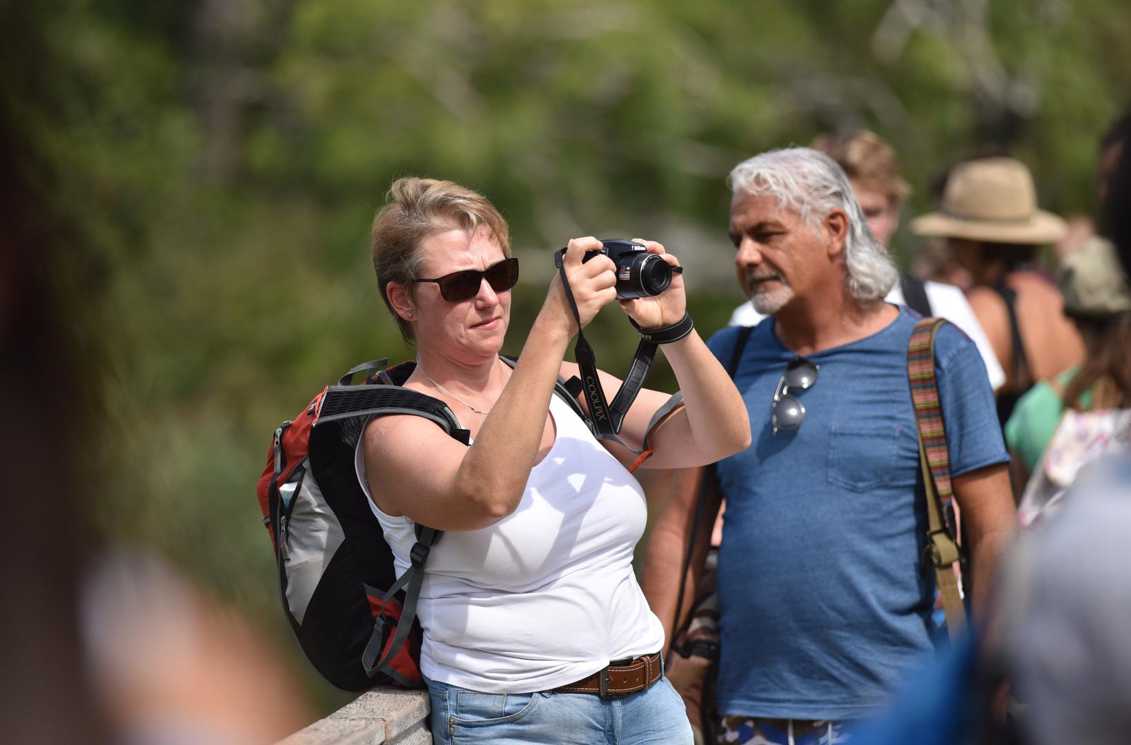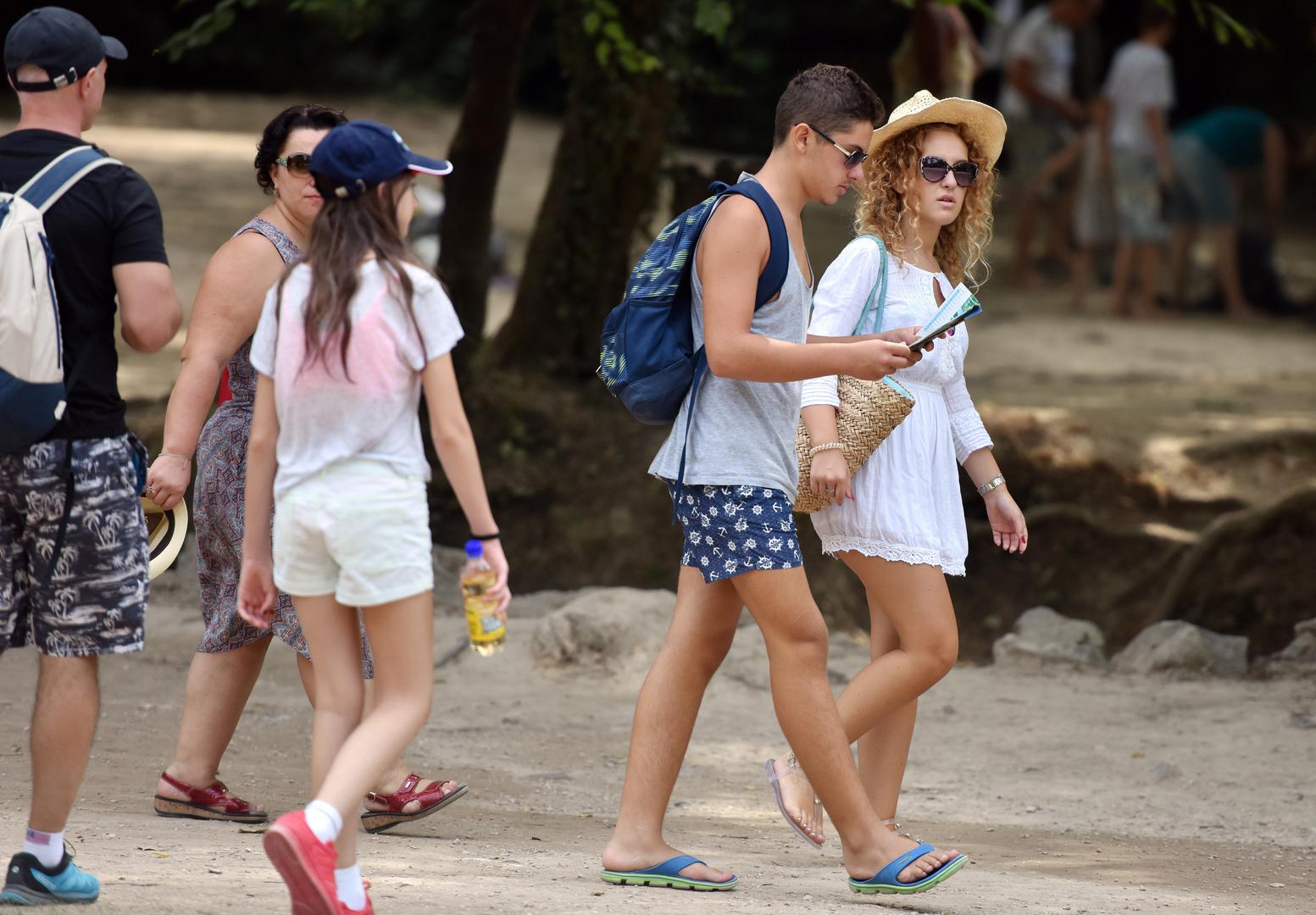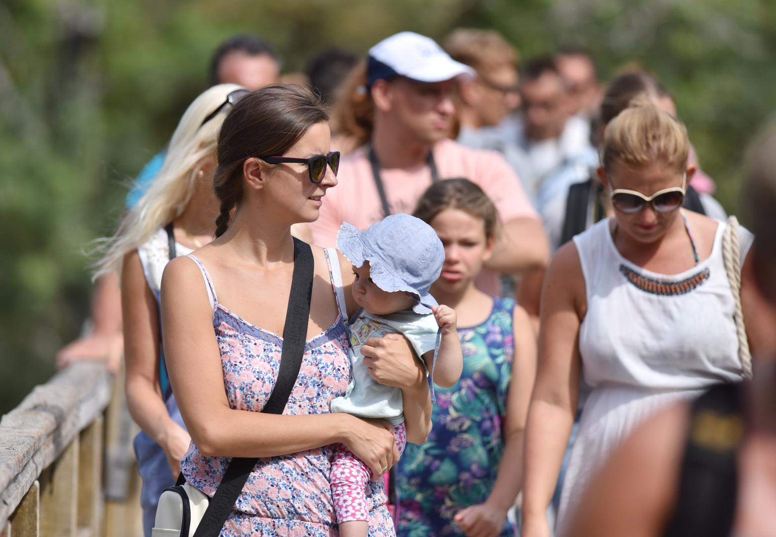 Atraktivne turistkinje uživaju fotografirajući se u plićaku Nacionalnog parka Krka