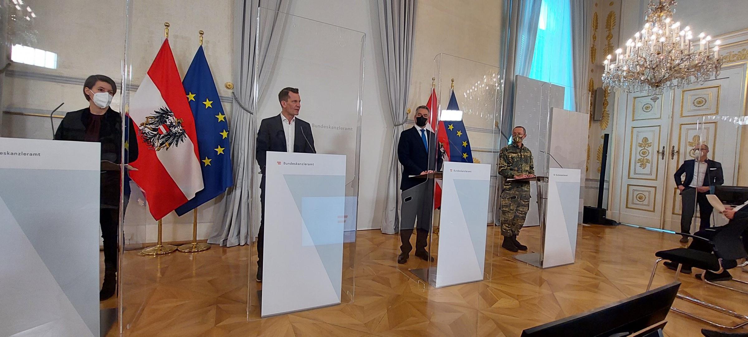 Austrijski kancelar Karl Nehammer i ministar zdravlja Wolfgang Möckstein potpomognuti čelnicima Nacionalnog krizno-koordinacijskog stožera za koronavirus (GECKO) Katharinom Reich i general bojnikom Rudolfom Striedingerom danas su na konferenciji za novinare u središtu austrijske vlade u Beču izvijestili o vladinoj odluci da 5. ožujka u Austriji ukine gotovo sve korona mjere.