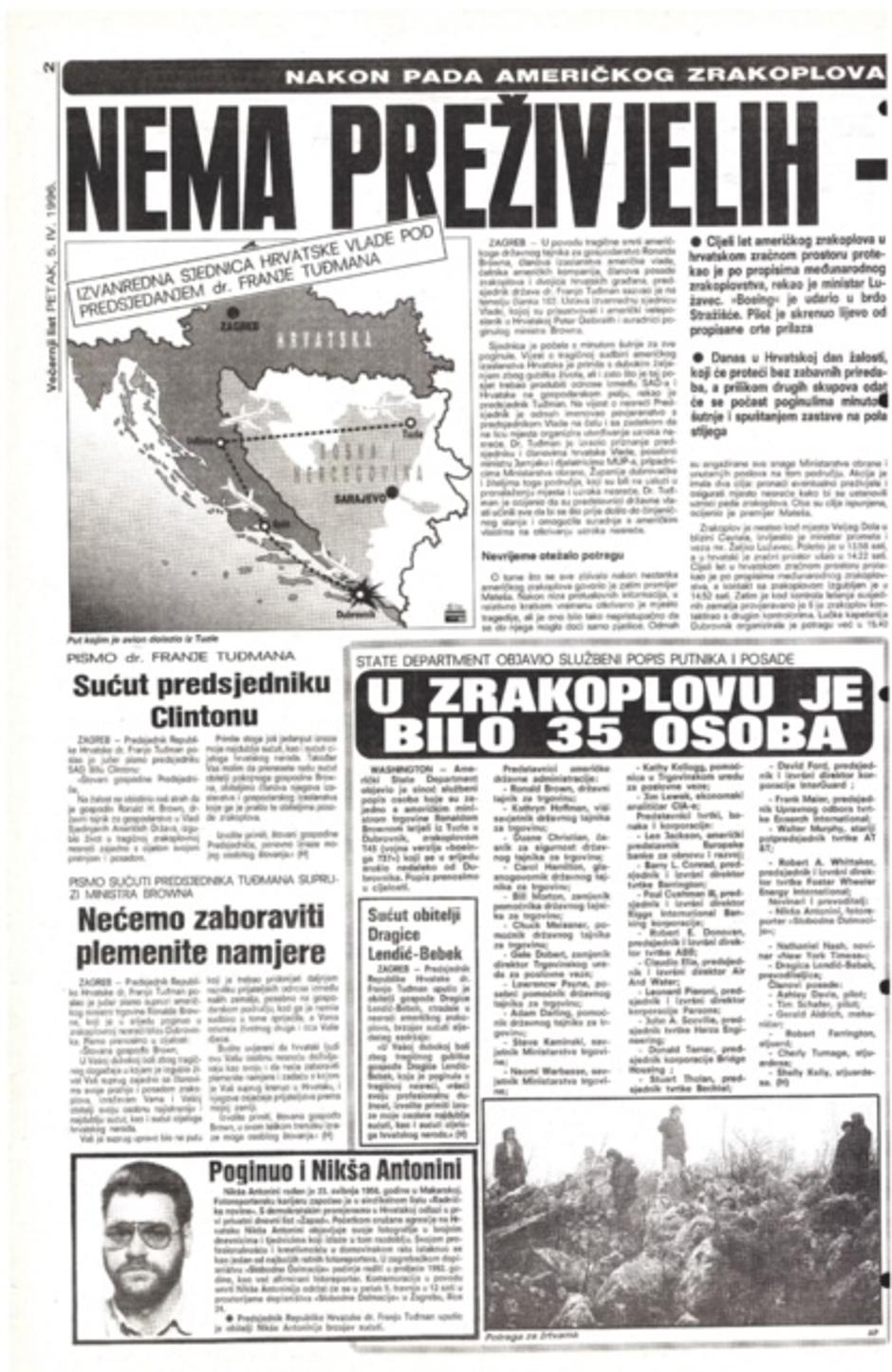 Ronald Brown bio je prvi Afroamerikanac na ministarskom položaju, u povijesti SAD-a. Tog je travnja, prije 27 godina, bio u misiji poticanja demokracije i trgovine, u jugoistočnoj Europi. Nakon posjete bazi SFOR-a u Tuzli, avion je američko izaslanstvo prevozio u Dubrovnik, gdje se Brown, tog kobnog dana, trebao sastati s hrvatskim dužnosnicima, ali, na odredište nije stigao.