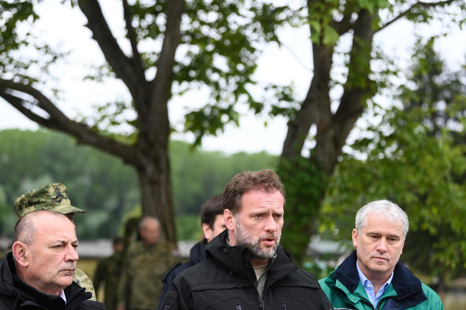 18.05.2023. Sisak - Uslijed puknuca nasipa poplavljena je udruga za terapijsko jahanje Kas. Konji su izvuceni na vrijeme, no unistene su stale i prostorije udruge. potpredsjednik Vlade i ministar branitelja Tomo Medved, zupan Sisacko-moslavacke zupanije Ivan Celjak Photo: Igor Soban/PIXSELL
