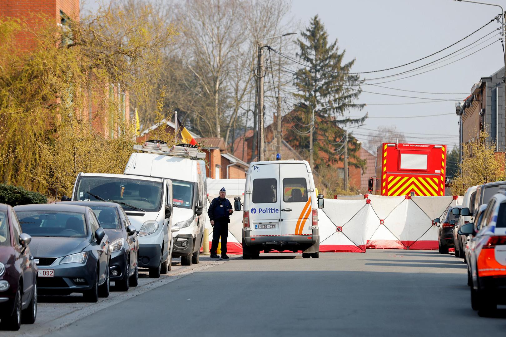 A police officer looks on at the site where a vehicle drove into a group of Belgian carnival performers who were preparing for a parade in the village of Strepy-Bracquegnies, Belgium March 20, 2022. REUTERS/Johanna Geron Photo: JOHANNA GERON/REUTERS