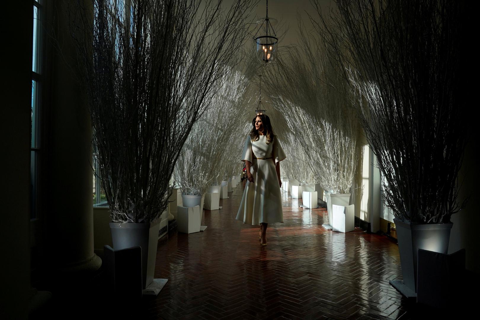 Prva dama Melania Trump predstavila je jučer božićno ruho Bijele kuće čija je glavna tematika, kako su mnogi komentirali, bijela boja.