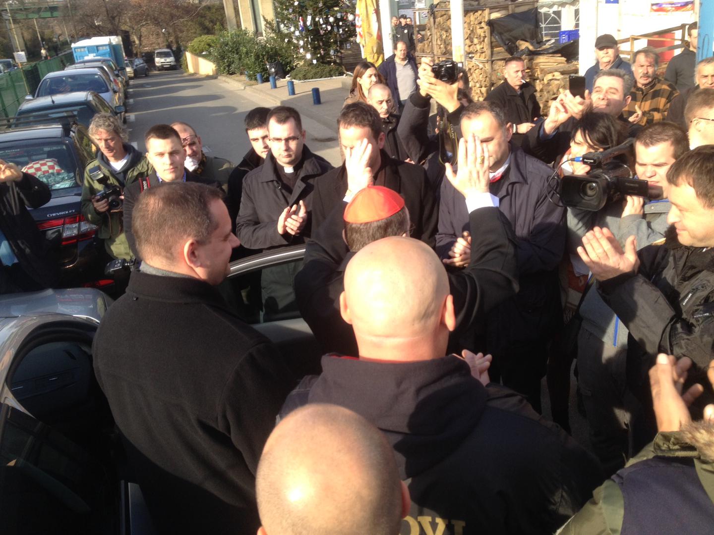Zagrebački nadbiskup kardinal Josip Bozanić posjetio je na Badnjak oko 11 sati hrvatske branitelje koji prosvjeduju ispred zgrade Ministarstva branitelja u Savskoj 66 te im je čestitao Božić.