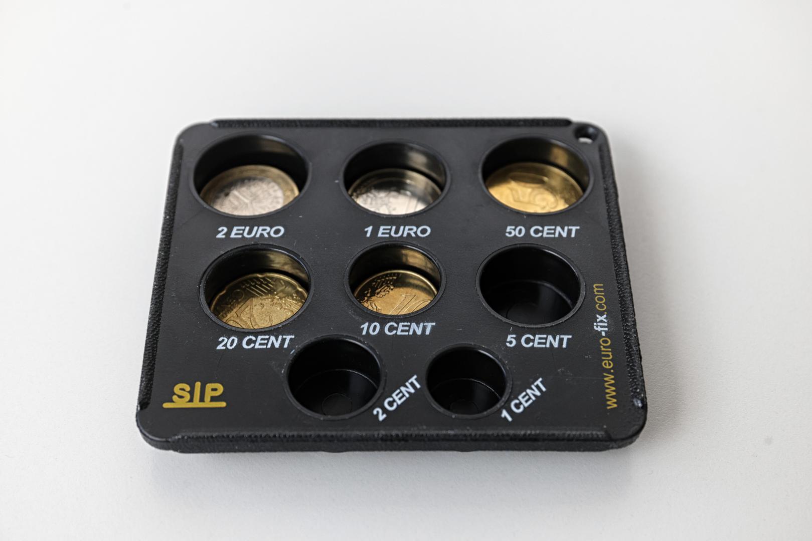 Ovaj praktični novčanik idealan je za sortiranje kovanica, a u njega stane točno 15,78 eura u apoenima od 1 cent, 2 centa, 5,10, 20 i 50 centi te veće kovanice od euro i dva eura. Kao dodatak dolazi plastični fiksator koji olakšava korištenje pa ga tako možete učvrstiti u novčaniku bez da vam kovanice ispadaju.