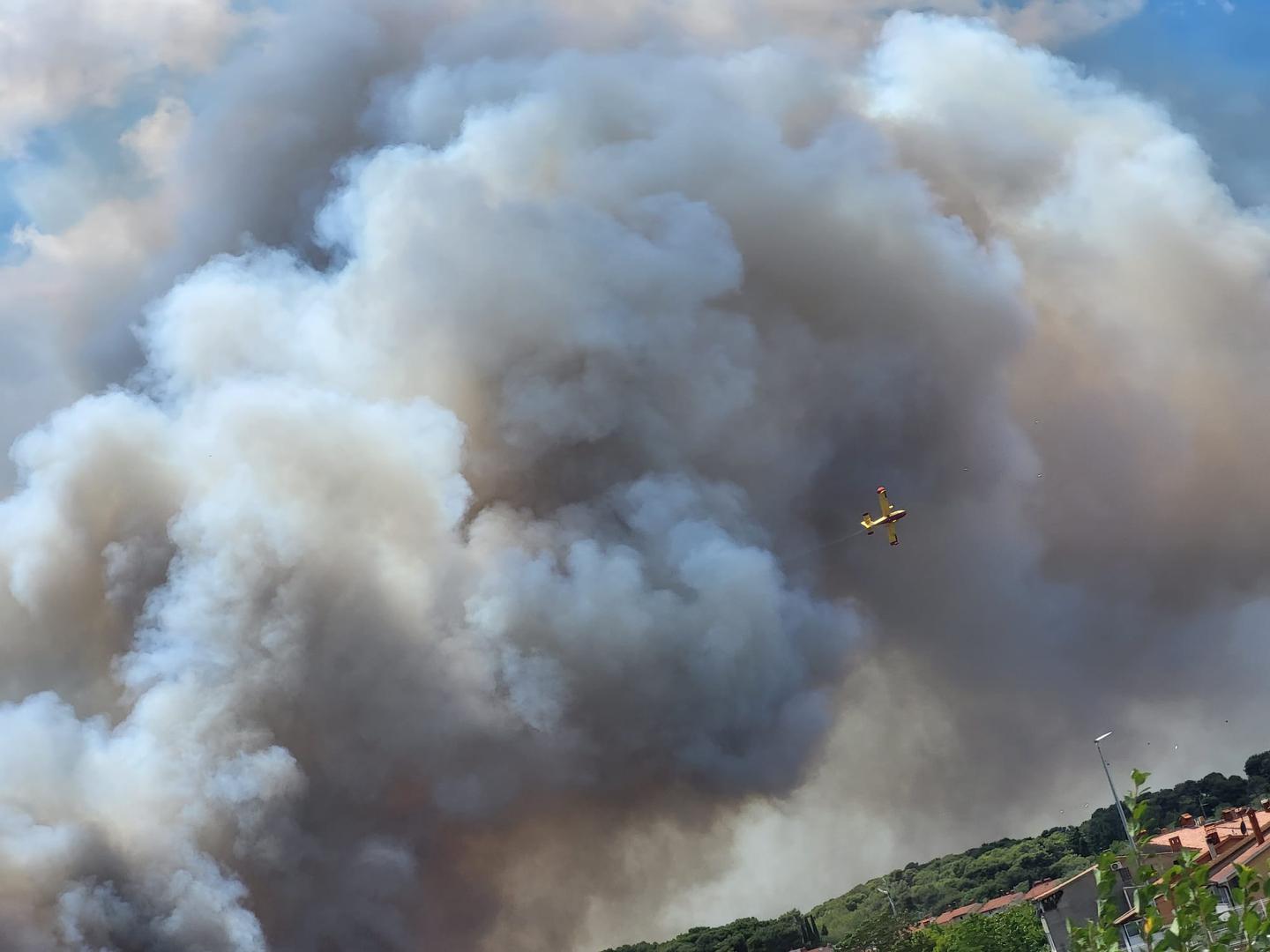 Po riječima županijskog vatrogasnog zapovjednika Dina Kozlevca u Pulu su stigla i dva kanadera koji pomažu vatrogascima u gašenju požara.