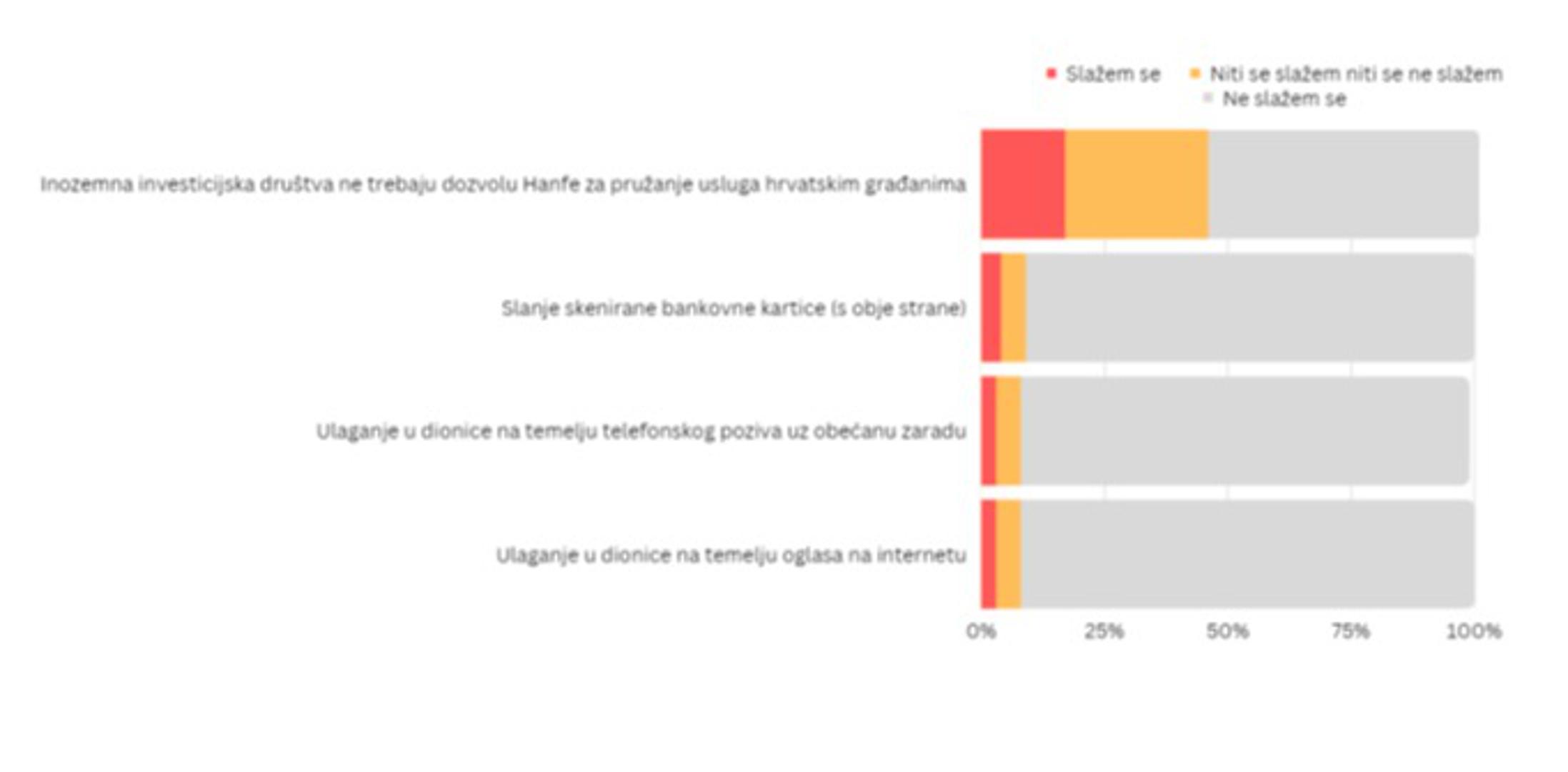 - Životno iskustvo ispitanika reflektira se u ostvarenom visokom rezultatu njihova financijskog znanja i poznavanja temeljnih financijskih pojmova i usluga (71 posto). No visoko teorijsko poznavanje svijeta financija nije praćeno jednako visokim i odgovornim financijskim ponašanjem (62 posto) te odnosom prema novcu (40 posto), a slični se odnosi uočavaju i kada je riječ o ukupnoj populaciji. Relativno niska ocjena razine financijskog ponašanja u odnosu na znanje može se objasniti činjenicom da na financijsko ponašanje utječe i financijska situacija pojedinca. Tako primjerice, unatoč tome što čak 62 posto ispitanika planira svoj mjesečni budžet, a visokih 78 posto ih prije kupnje razmisli može li si priuštiti određeni proizvod ili uslugu, čak 44 posto ispitanika nije otporno na financijske šokove te ne bi moglo pokriti nenadani trošak u visini mjesečnih primanja. Stoga je važno naglasiti kako ti rezultati ne odražavaju samo subjektivnu percepciju novca i upravljanja financijama, već i objektivne okolnosti, ponajprije u vidu nedostatne razine prosječnog dohotka u mirovini u visini od tek oko 40 posto prosječne plaće, koja onemogućava umirovljenicima da primjerenije upravljaju svojim financijama kroz npr. aktivnu štednju i osiguravanje financijske otpornosti na šokove – zaključuje regulator.