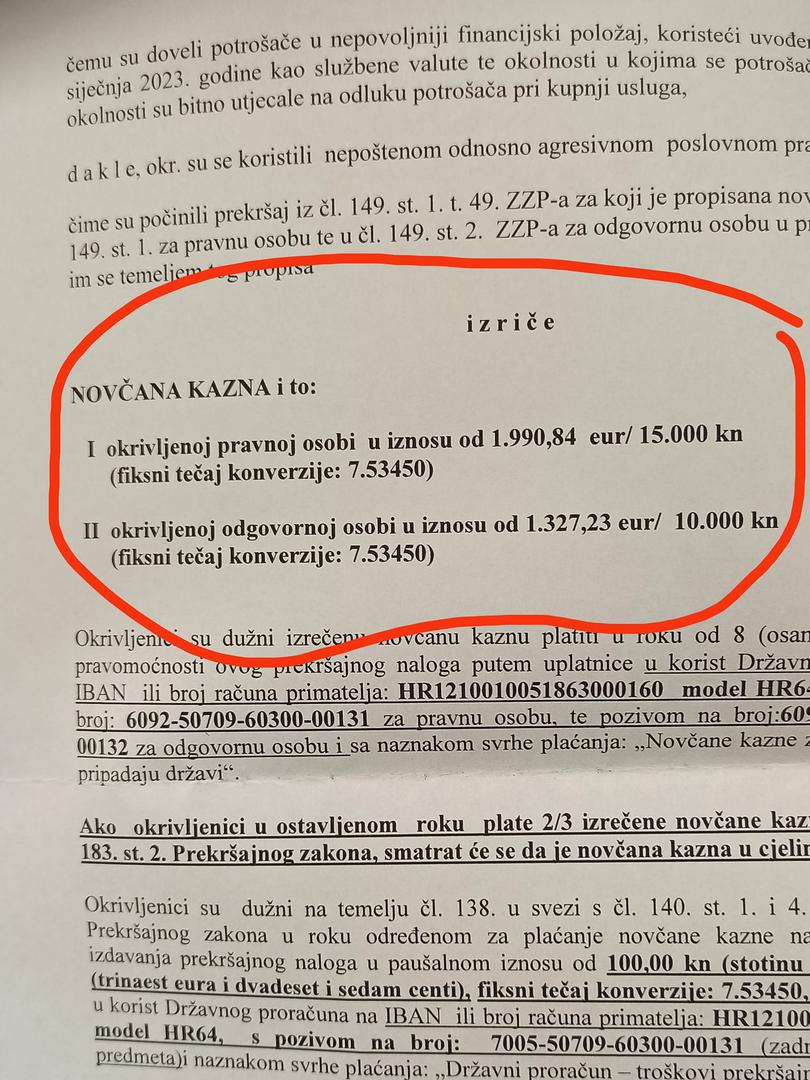 Članica Facebook grupe Udruga Glas poduzetnika objavila je fotografije prekršajnog naloga za frizerski salon u Zagrebu kojem je izrečena velika kazna. Prema fotografijama objavljenim u Facebook grupi izrečena je kazna od 1990,84 eura pravnoj osobi i 1327,23 eura odgovornoj osobi, a sve zbog povećanja cijena.