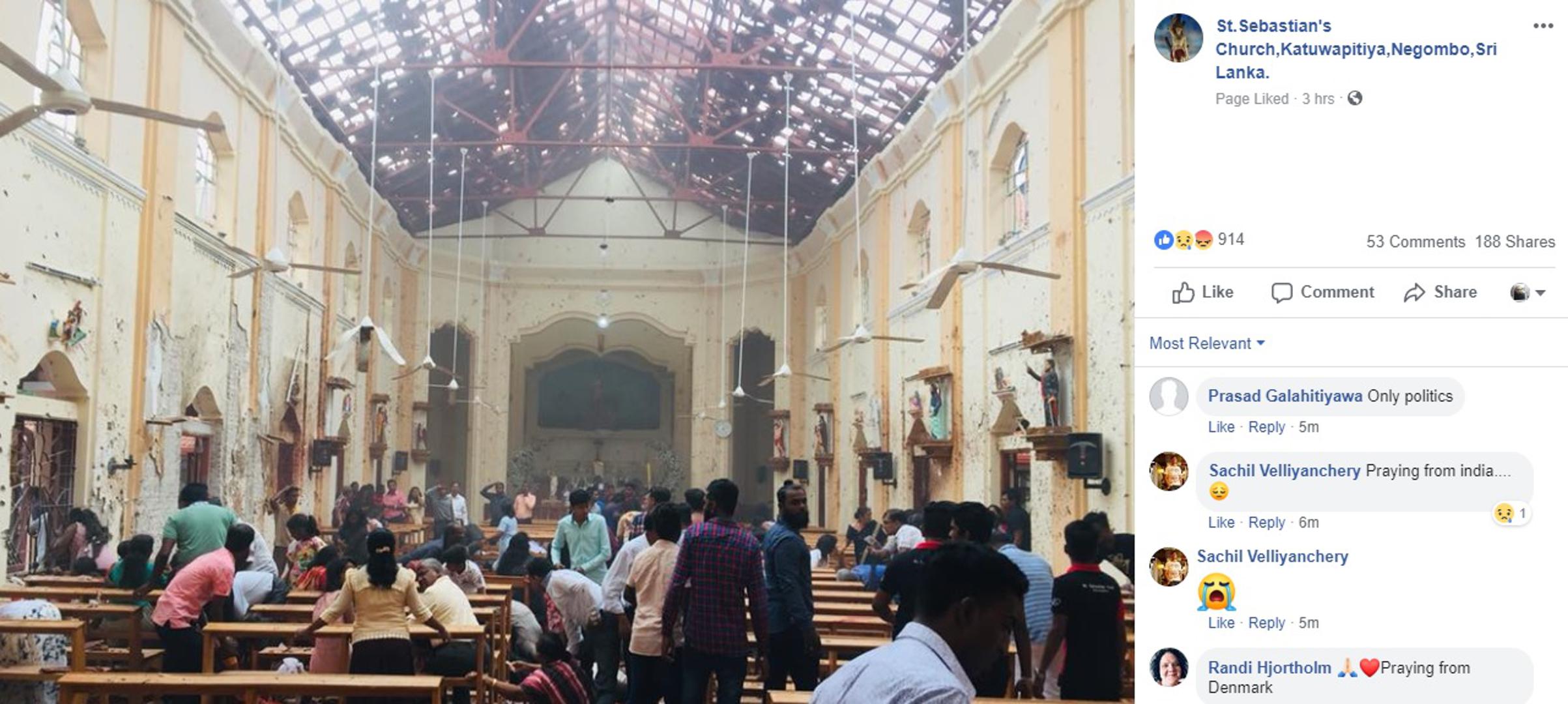 Jedna od pogođenih crkava, Crkva sv. Sebastiana u Negombu sjeverno od Colomba, objavila je fotografije razaranja unutar crkve na svojoj Facebook stranici na kojoj se vidi krv na klupama i podu te zatražila pomoć javnosti.