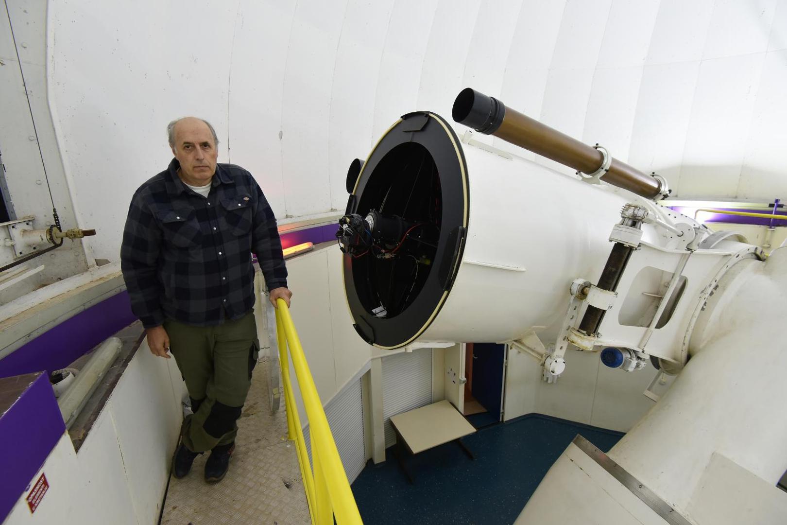 Ipak, uspjeli smo se dogovoriti da nas povede put nove zvjezdarnice izvan mjesta, nesigurni hoće li se ondje uopće i uprizoriti jer je rekao da ide za nama, no naposljetku je stigao. Nekako kao da se odobrovoljio kad nas je uveo u “svoje carstvo” kojim dominira donirani teleskop TT1 – osmi teleskop svijeta po broju mjerenja opisanih objekata, ispred kojeg su jedino oni na Havajima i u Arizoni – za koji je napravljena posebna CCD kamera sa setom filtara, pa nas je, potegnuvši iz boce light colu, svoj doping, posjeo ispred velikog monitora na kojem nam je pokazivao fotografije zviježđa snimljenih moćnim teleskopom.