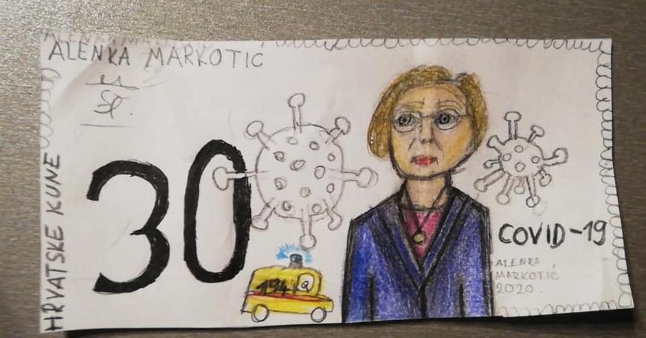 Riječ je crtežu 10-godišnjakinje Eve Šikić koja je nacrtala improviziranu novčanicu od 30 kuna koju krasi lik Alemke Markotić, ravnateljice Klinike za infektivne bolesti "dr. Fran Mihaljević". Ravnateljica Markotić posljednjih se tjedana uistinu prometnula u jednu od ključnih osoba u hrvatskoj javnosti, a sve zbog svojeg staloženog, profesionalnog i uključivog stava tijekom obraćanja naciji povodom pandemije koronavirusa.